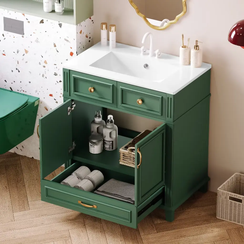 Our bathroom vanity provide ample space for all your toiletries and bathroom essentials. The combination of the cabinet body and the drawer perfectly stores all kinds of bathroom products and keeps the necessities away from water stains and dust.