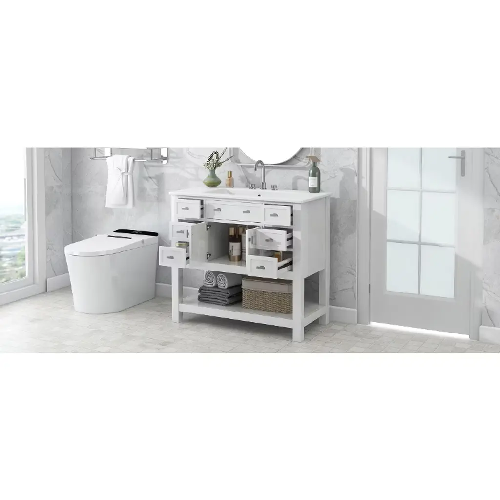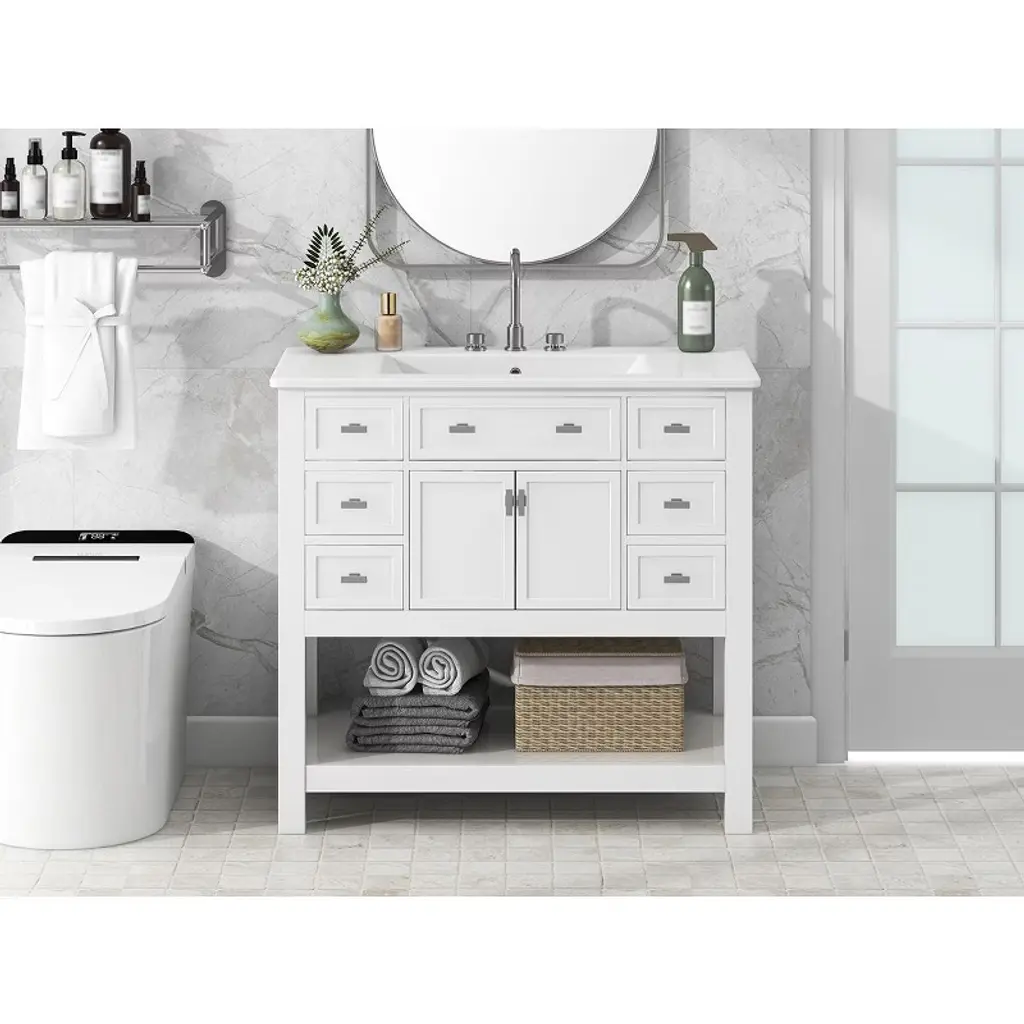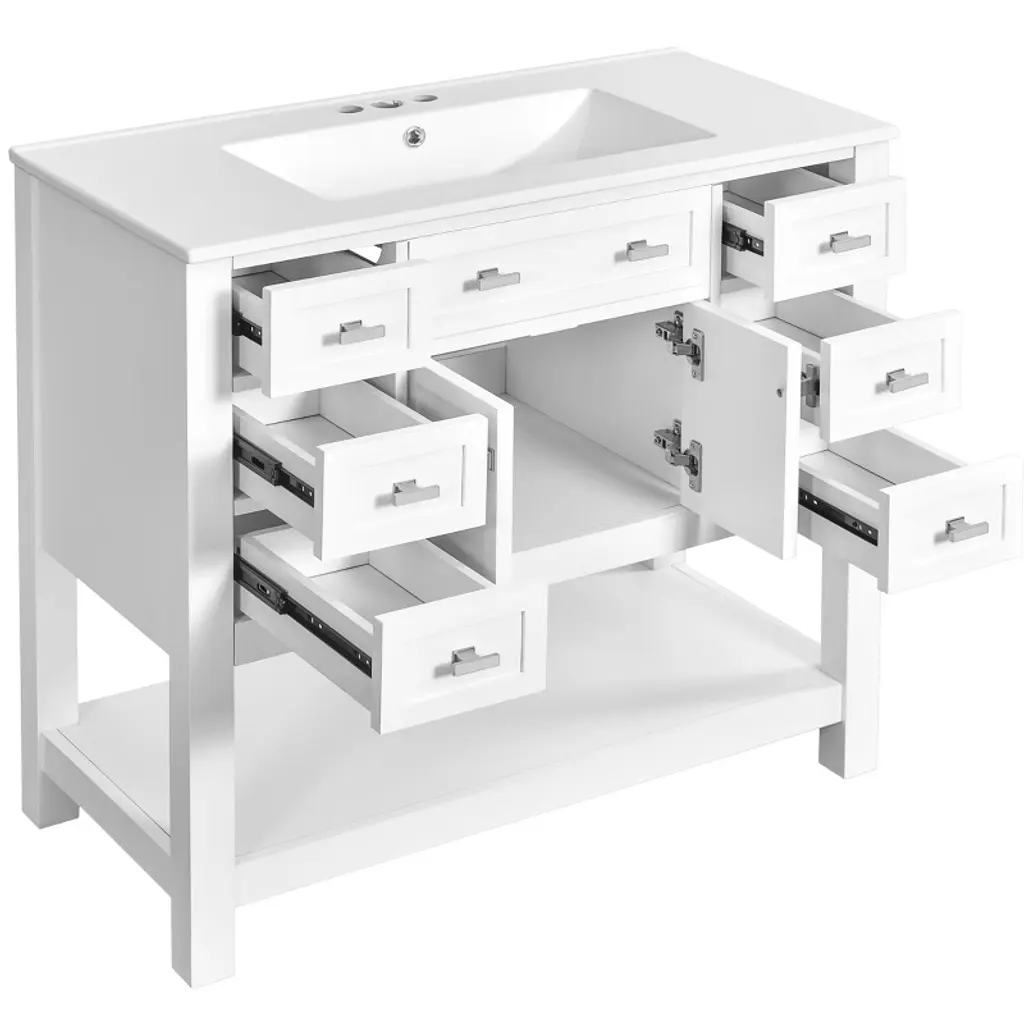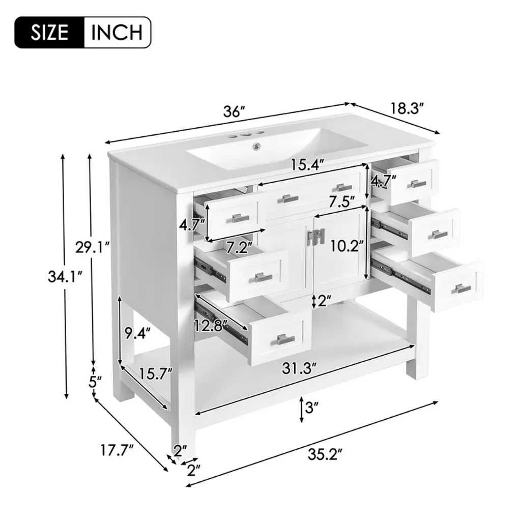 Ridstar 34.1 In. H White Modern Bathroom Storage Cabinet With 2 Soft Closing Doors And 6 Drawers