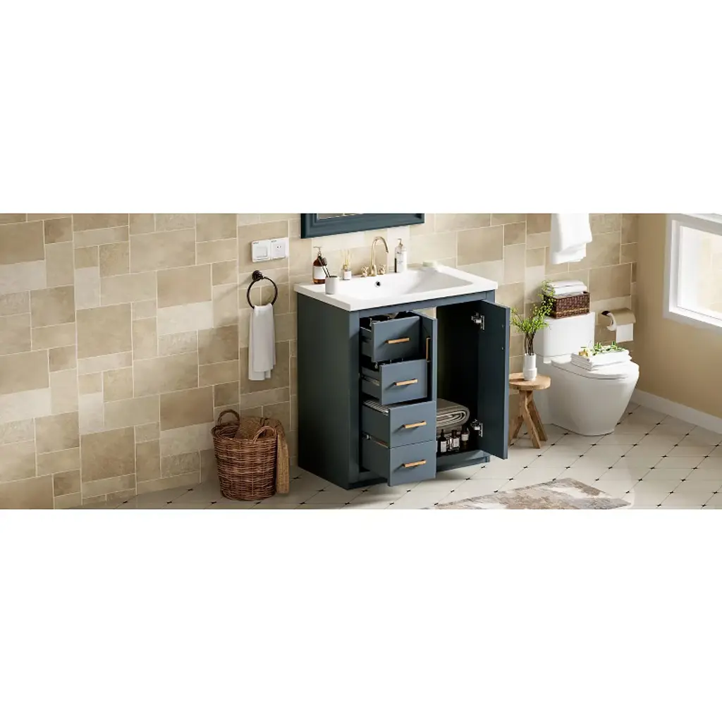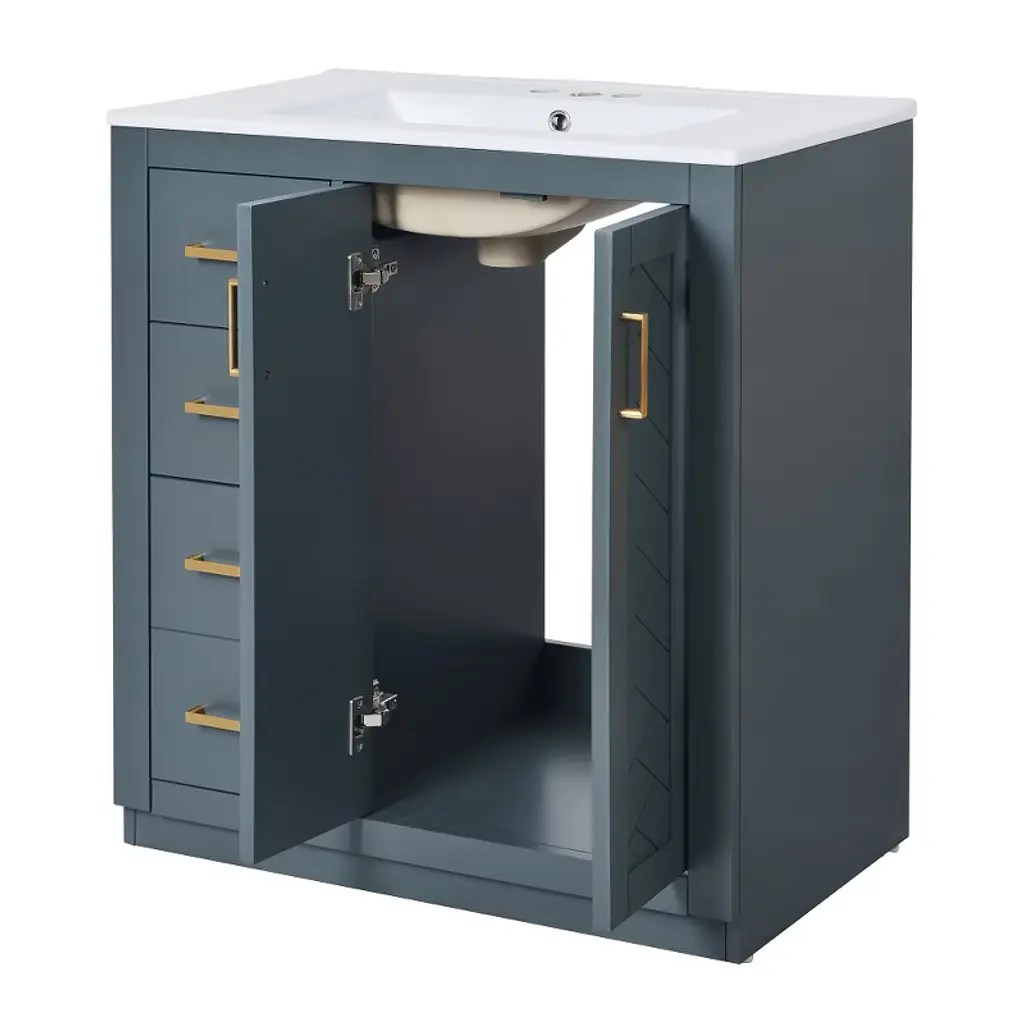 The combination of cabinets and drawers of our bathroom vanities perfectly stores a wide range of bathroom products and keeps essentials away from water and dust.