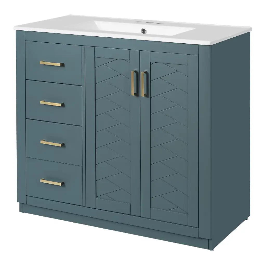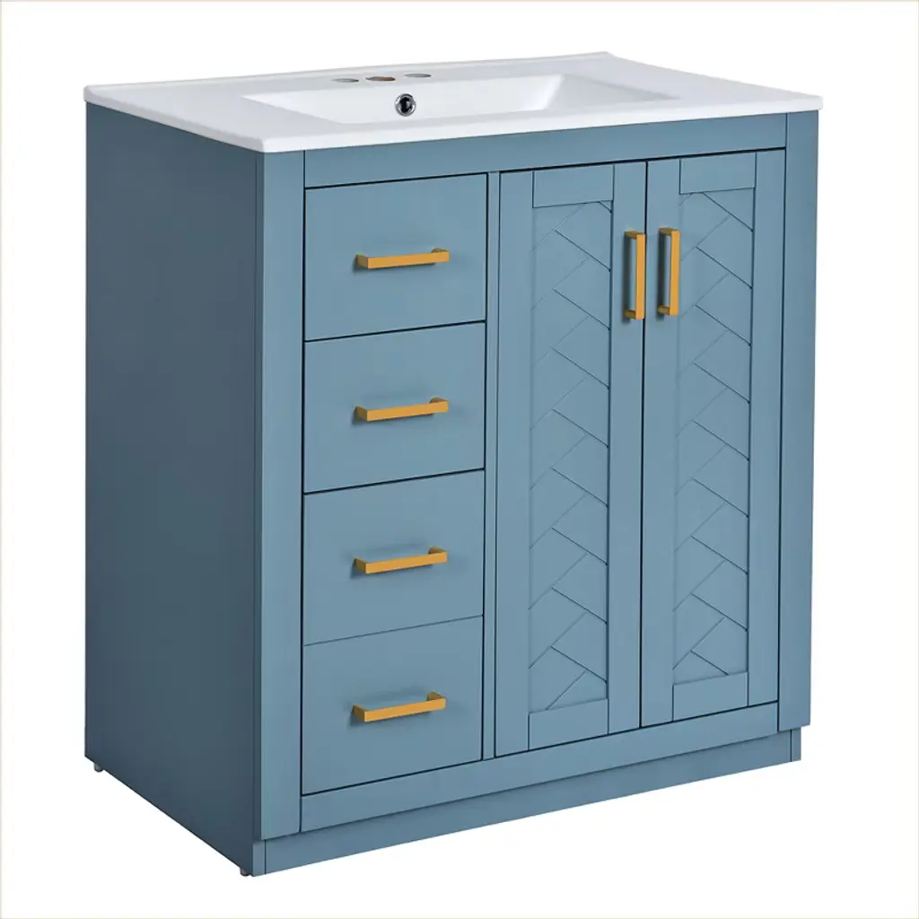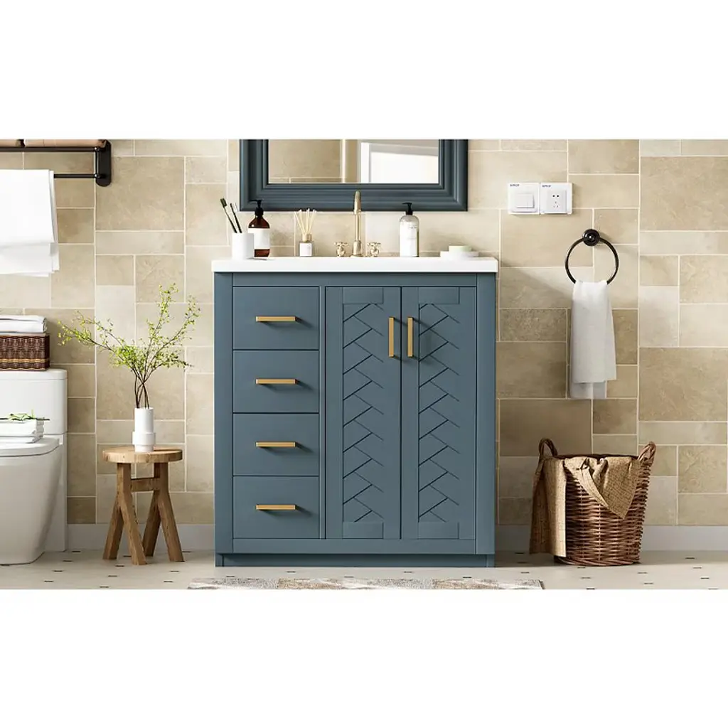 Ridstar 34 In. H Blue Bathroom Storage Cabinet With 3 Drawers& Soft Closing Doors