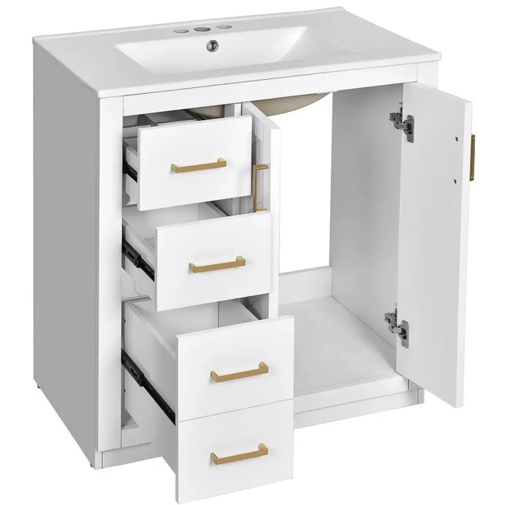 The combination of cabinets and drawers of our bathroom vanities perfectly stores a wide range of bathroom products and keeps essentials away from water and dust.