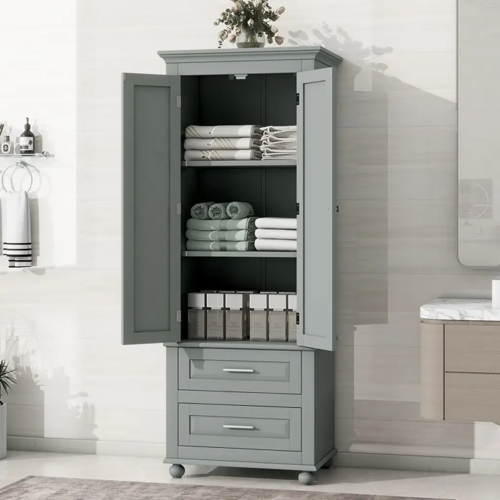 Ridstar 62.50 In. Grey Tall Storage Cabinet With Two Drawers For Bathroom/office