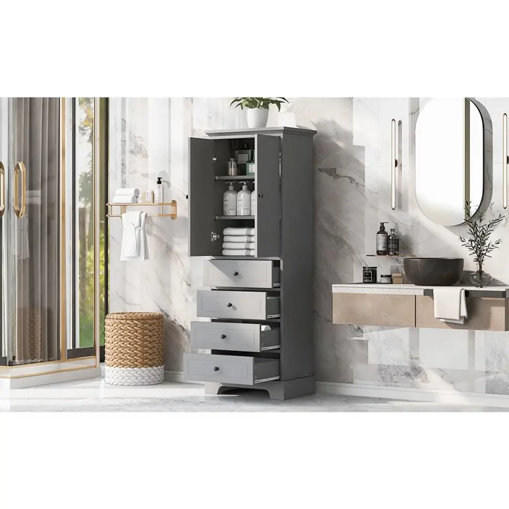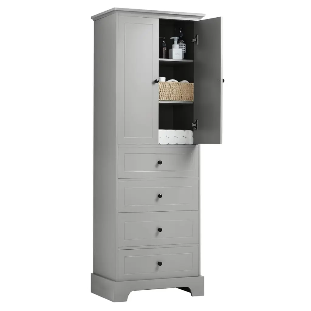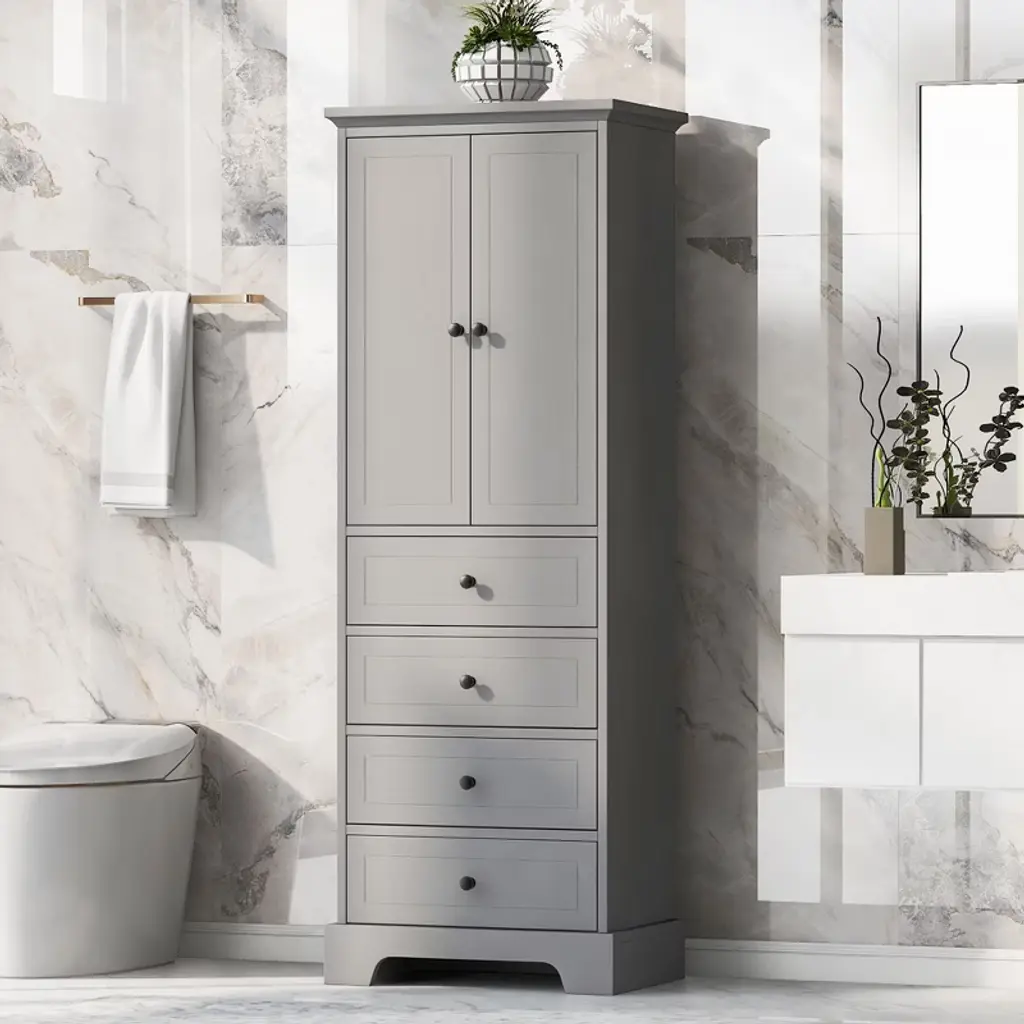 Ridstar 68.1 In. H Grey Bathroom Storage Cabinet With 2 Doors And 4 Drawers