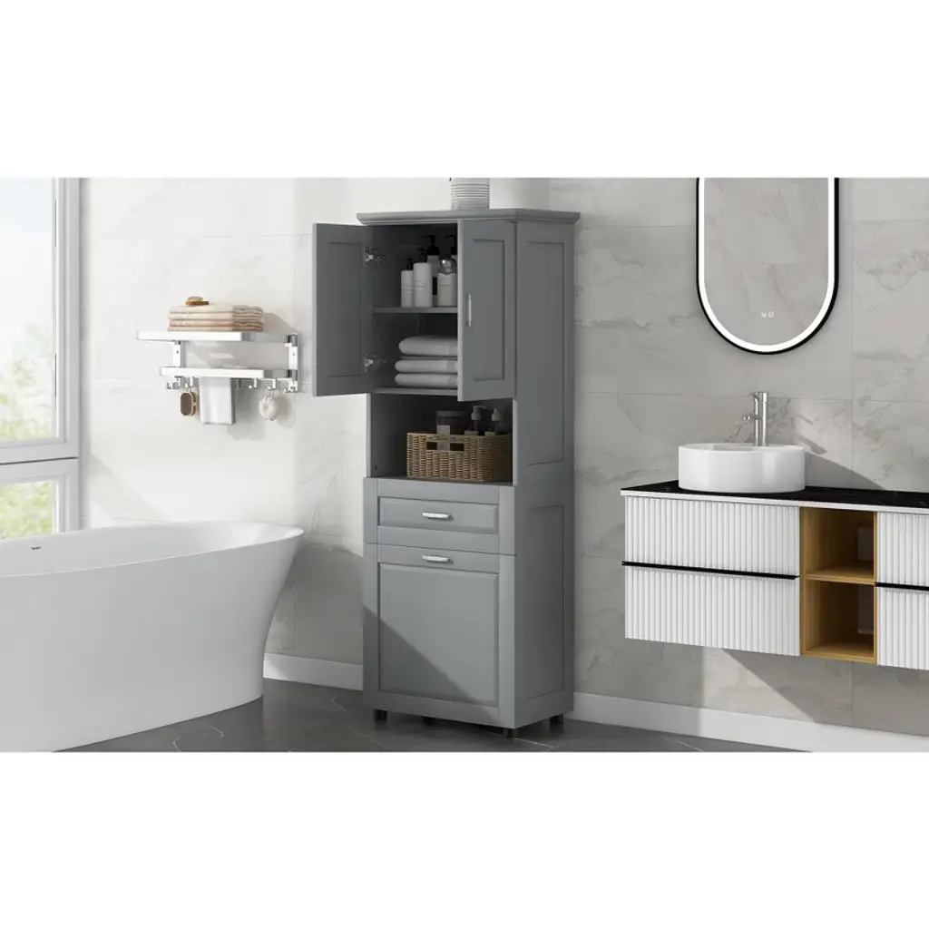 Ridstar 69.92 In. H Grey Bathroom Storage Cabinet Laundry Basket