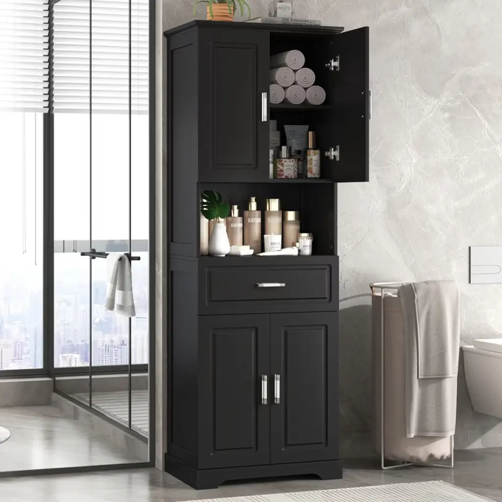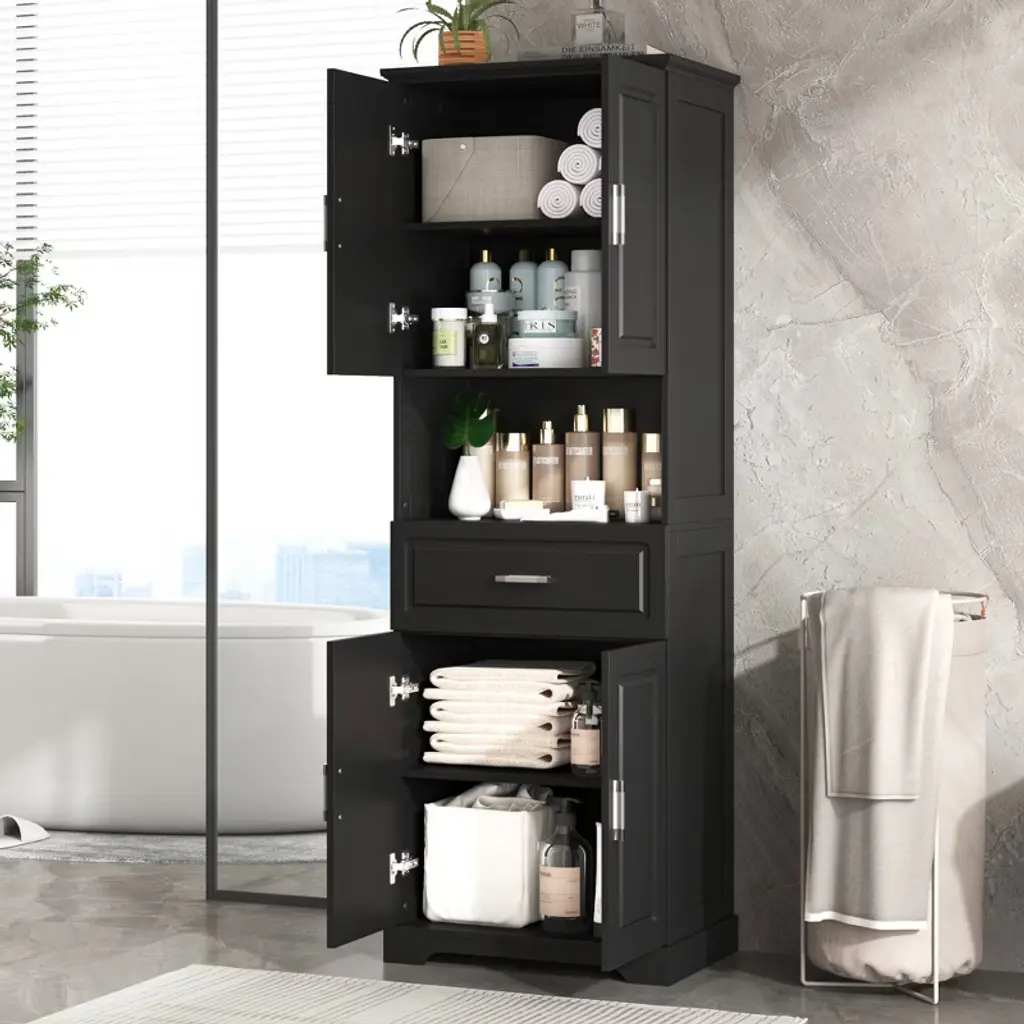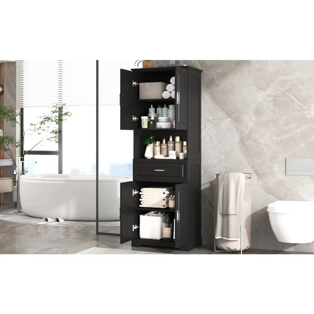 Ridstar 70.8 In. H Black Bathroom Cabinet With Four Doors