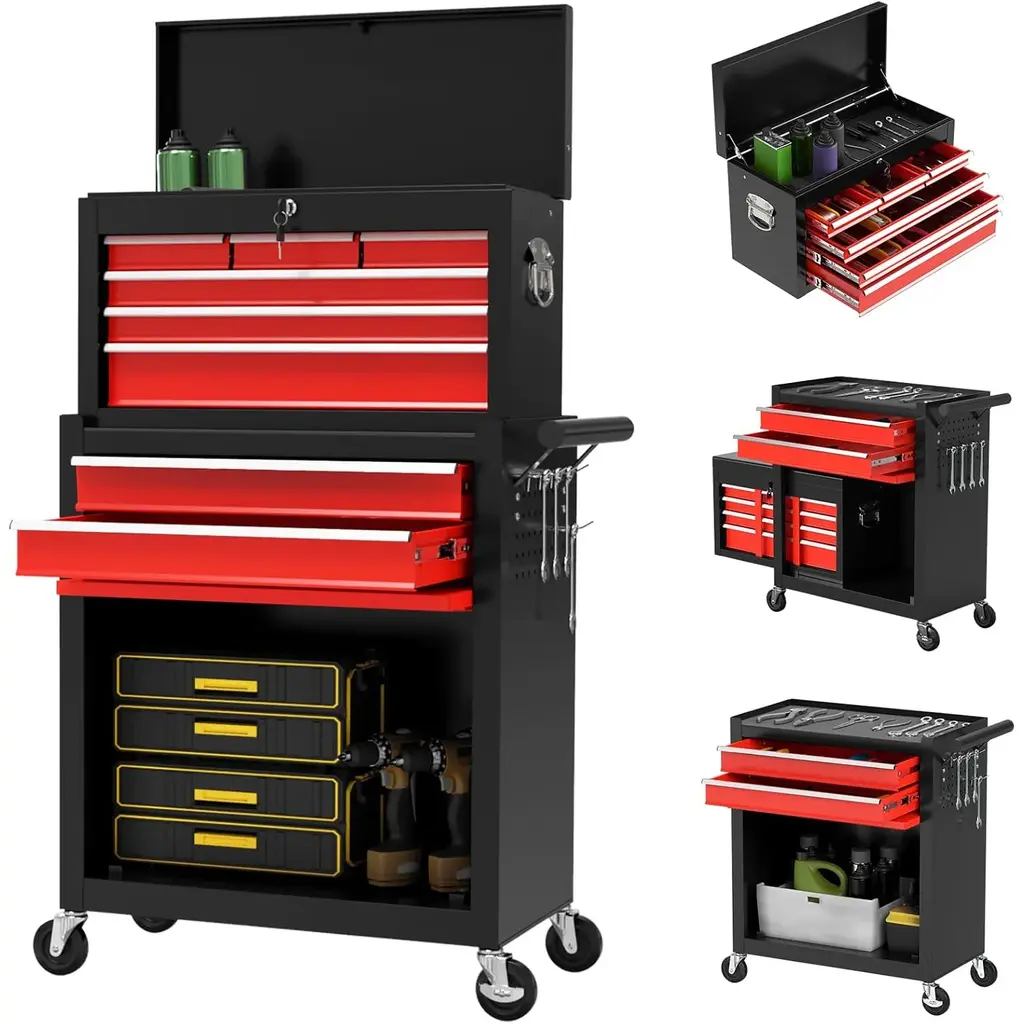 3-Drawer Rolling Tool Chest with Wheels, Tool Chest with Large Storage Cabinet and Adjustable Shelf, Removable Portable Top Box with Locking System Tool Chest for Garage, Warehouse.Features:Specification: