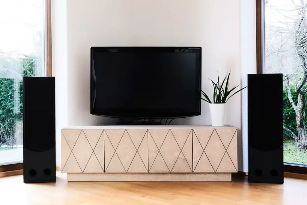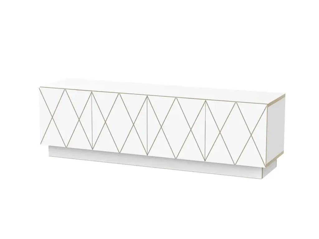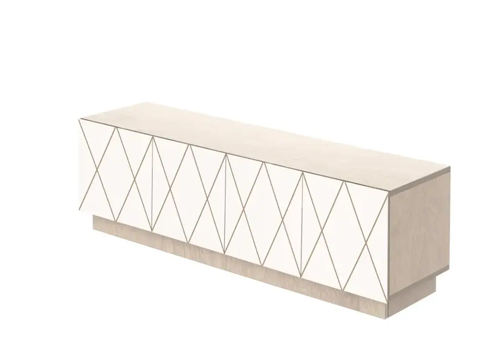The charm of the intoxicating pattern of lines speaks to the viewer. The four doors hide everything that doesn’t concern others. This TV cabinet combines limitless beauty with immense practicality.The internal height is 33cm, so it is also suitable for the office to accommodate folders or favorite vinyl records. Inside there are also two height-adjustable intermediate shelves.Made of high-quality birch plywood, oil-waxed or CPL plywood, push2open door hinges that open and close with pressure. The pattern on the doors is engraved. Basement 8 cm high, which fits different skirting boards.