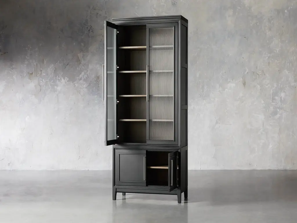 Artfully designed for both function and style, our modular Rowan Collection can be easily arranged to fit any space. Crafted by Indonesian artisans, each piece is hand-painted and hand-stained, resulting in a clean, modern aesthetic accented by iron hardware. Adorned with reeded glass detailing, Rowan is perfect for storing everyday items or for displaying your favorite curiosities.