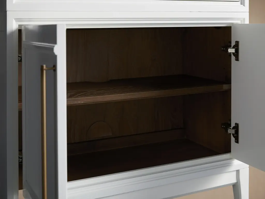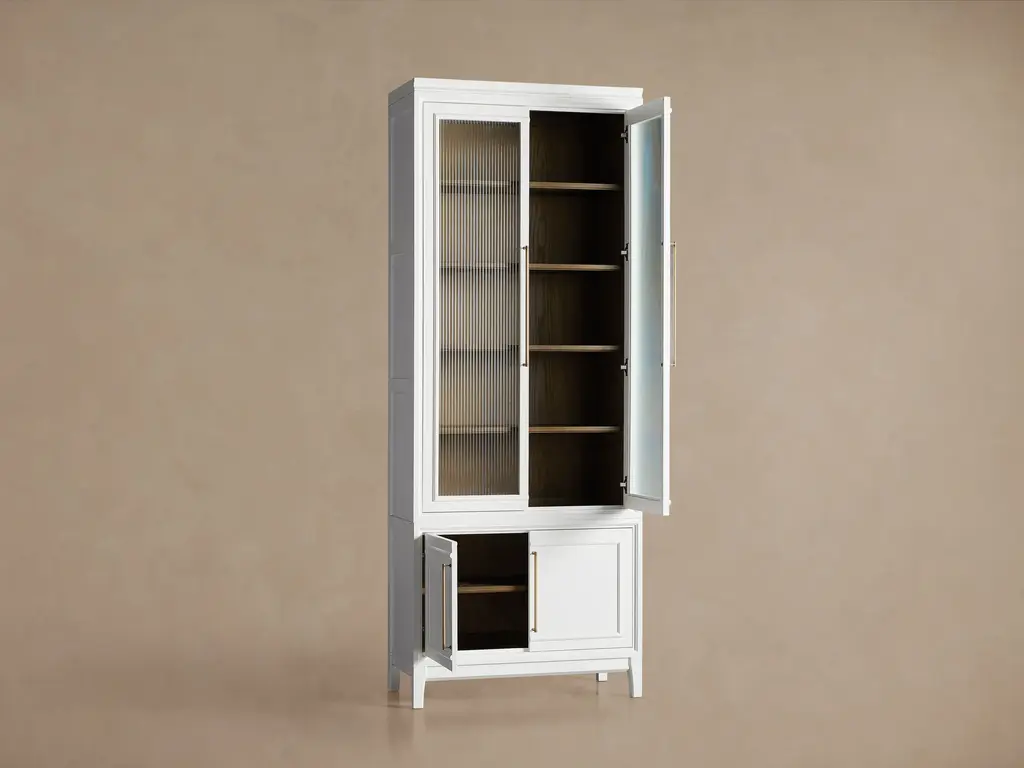 Artfully designed for both function and style, our modular Rowan Collection can be easily arranged to fit any space. Crafted by Indonesian artisans, each piece is hand-painted and hand-stained, resulting in a clean, modern aesthetic accented by iron hardware. Adorned with reeded glass detailing, Rowan is perfect for storing everyday items or for displaying your favorite curiosities.