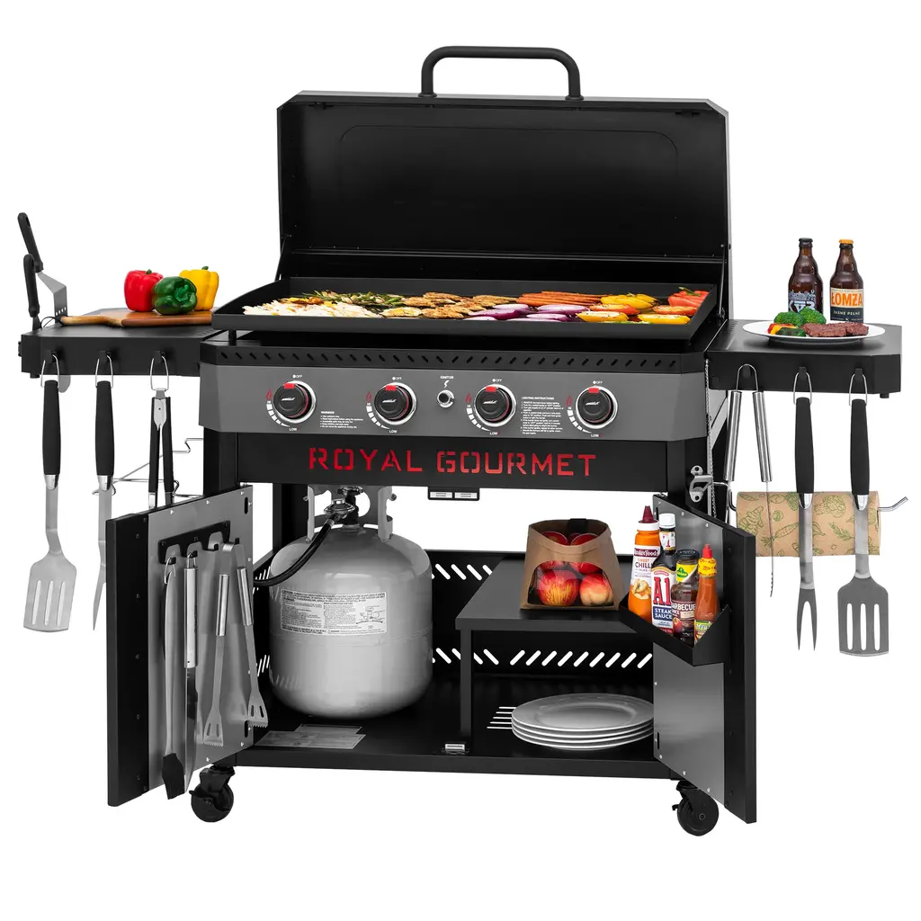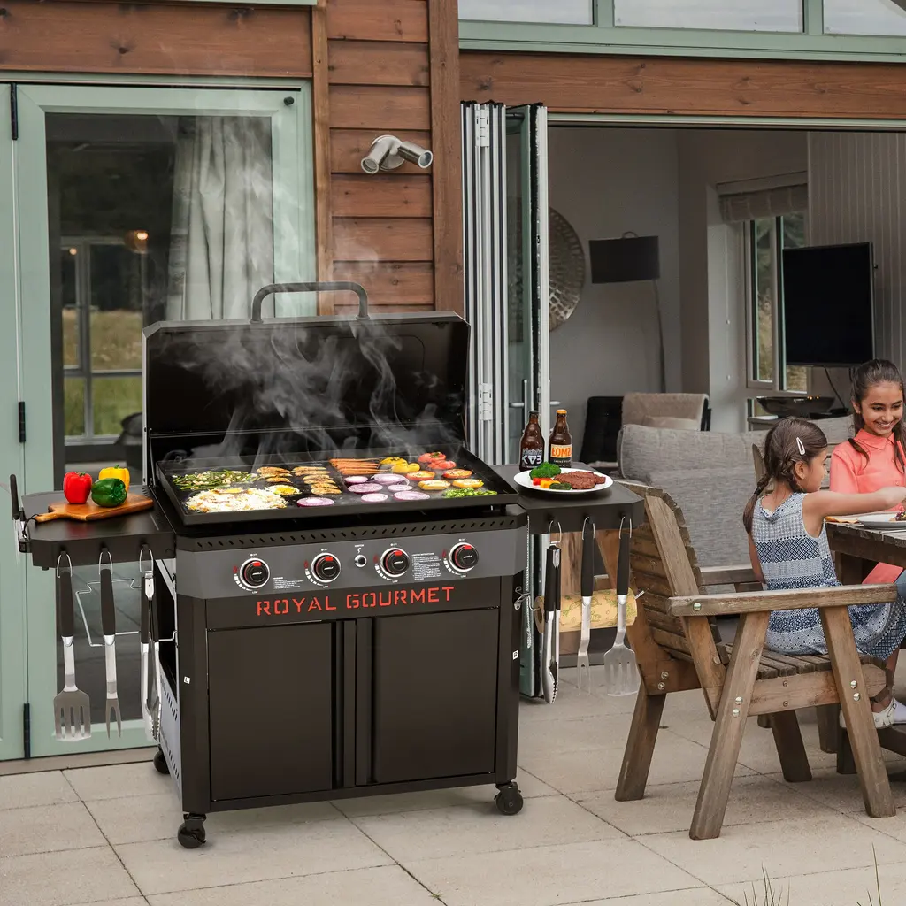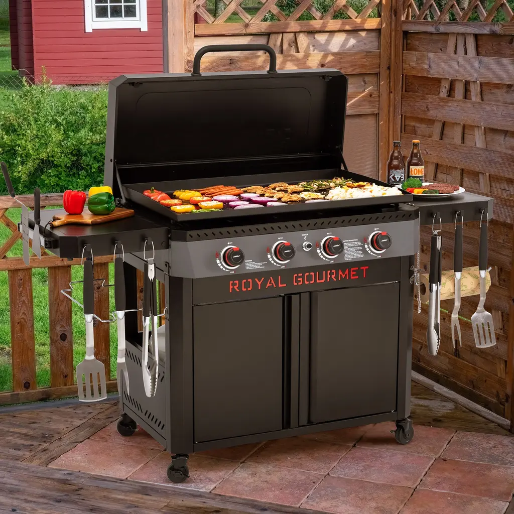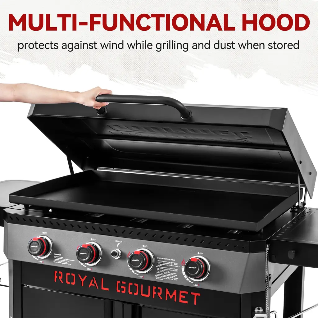 Royal Gourmet 4-Burner Black Gas Griddle With Hood - Propane Gas
