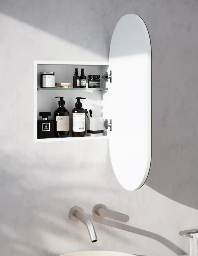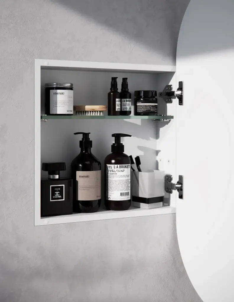 You"™ll fall in love with the gentle curves of the Ruma medicine cabinet. The eye-catching shape makes it the perfect finishing touch to your bathroom. At the same time, the recessed design offers an abundance of space for your products, keeping your bathroom looking and feeling like a spa-like sanctuary.