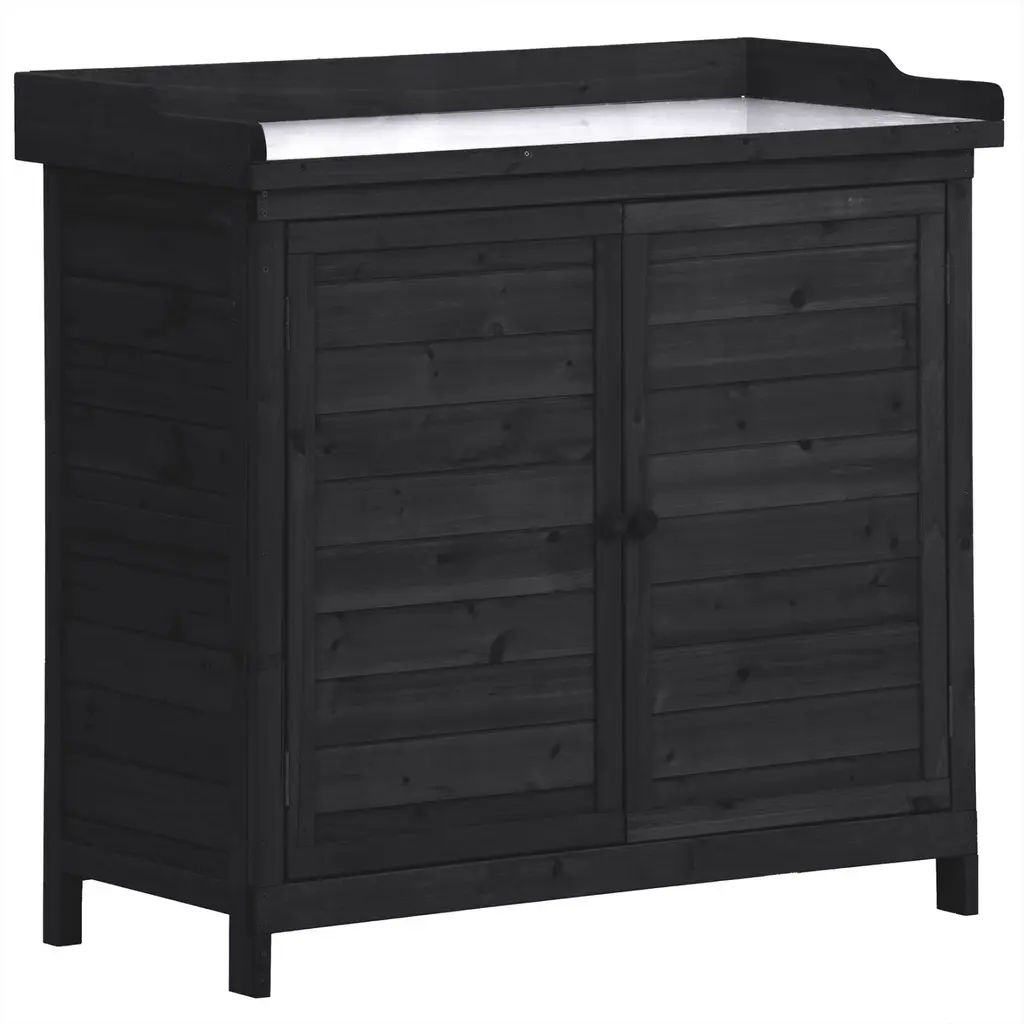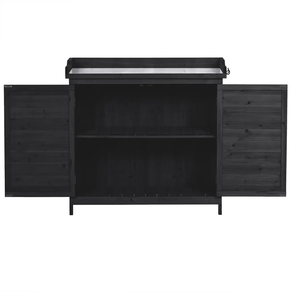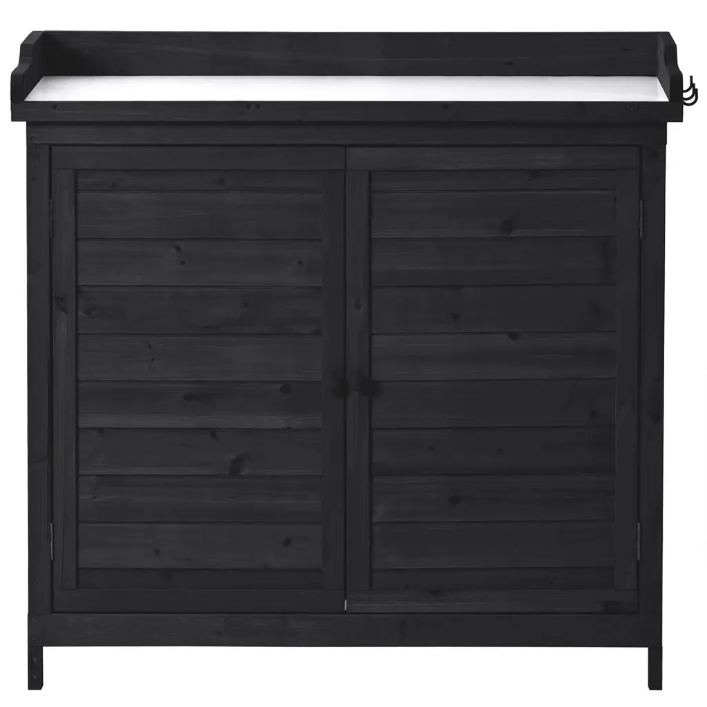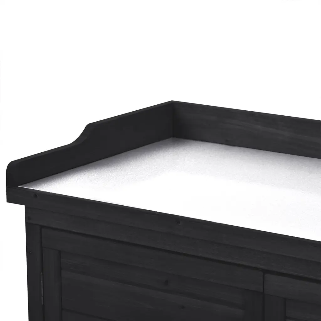 Rustic Solid Wood Garden Potting Bench With Cabinet And Shelves - 37"h - Black
