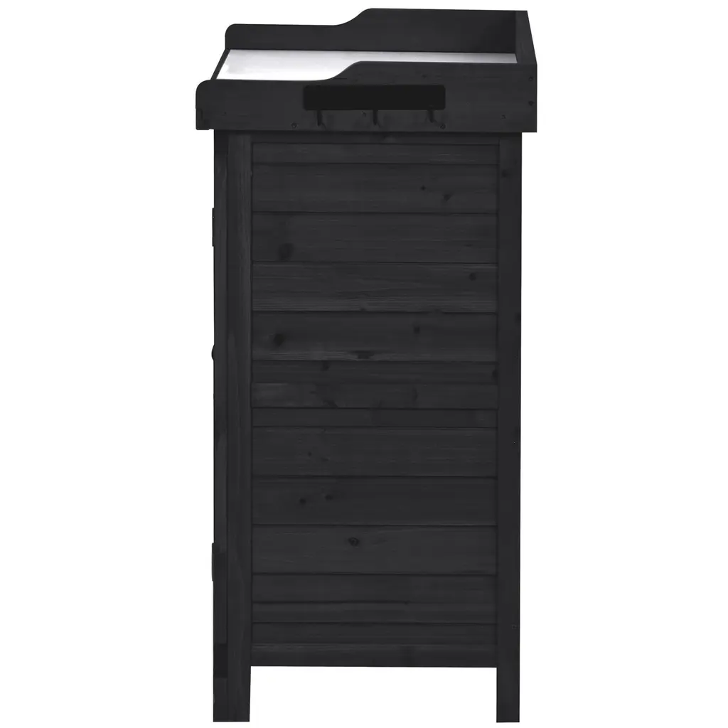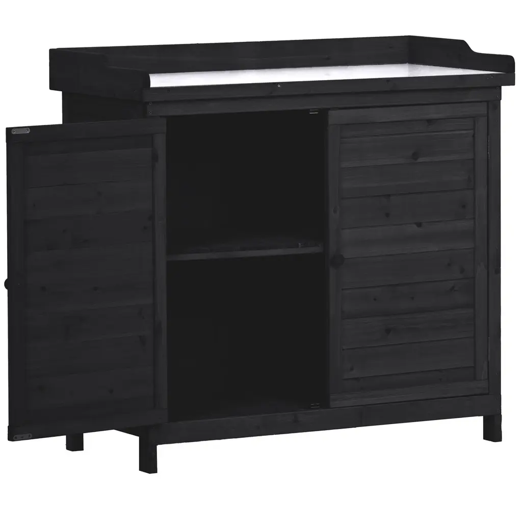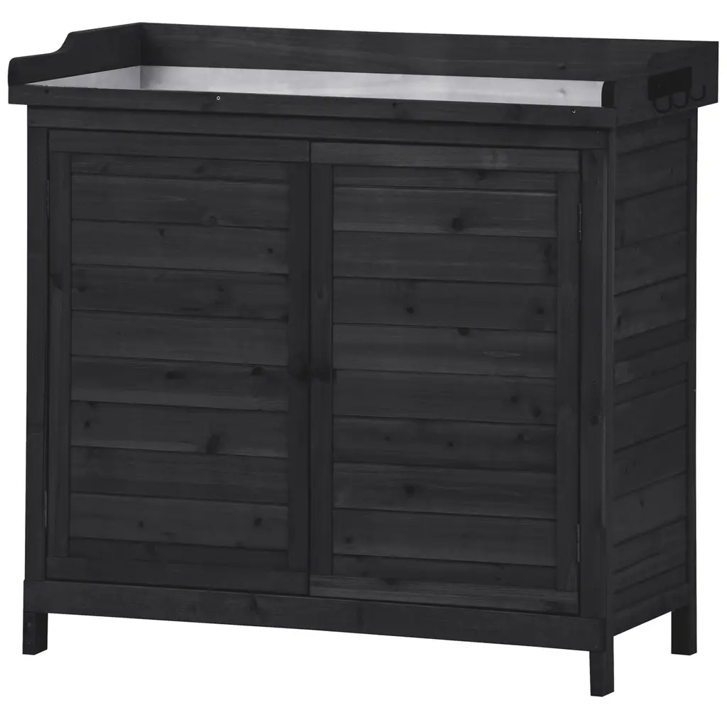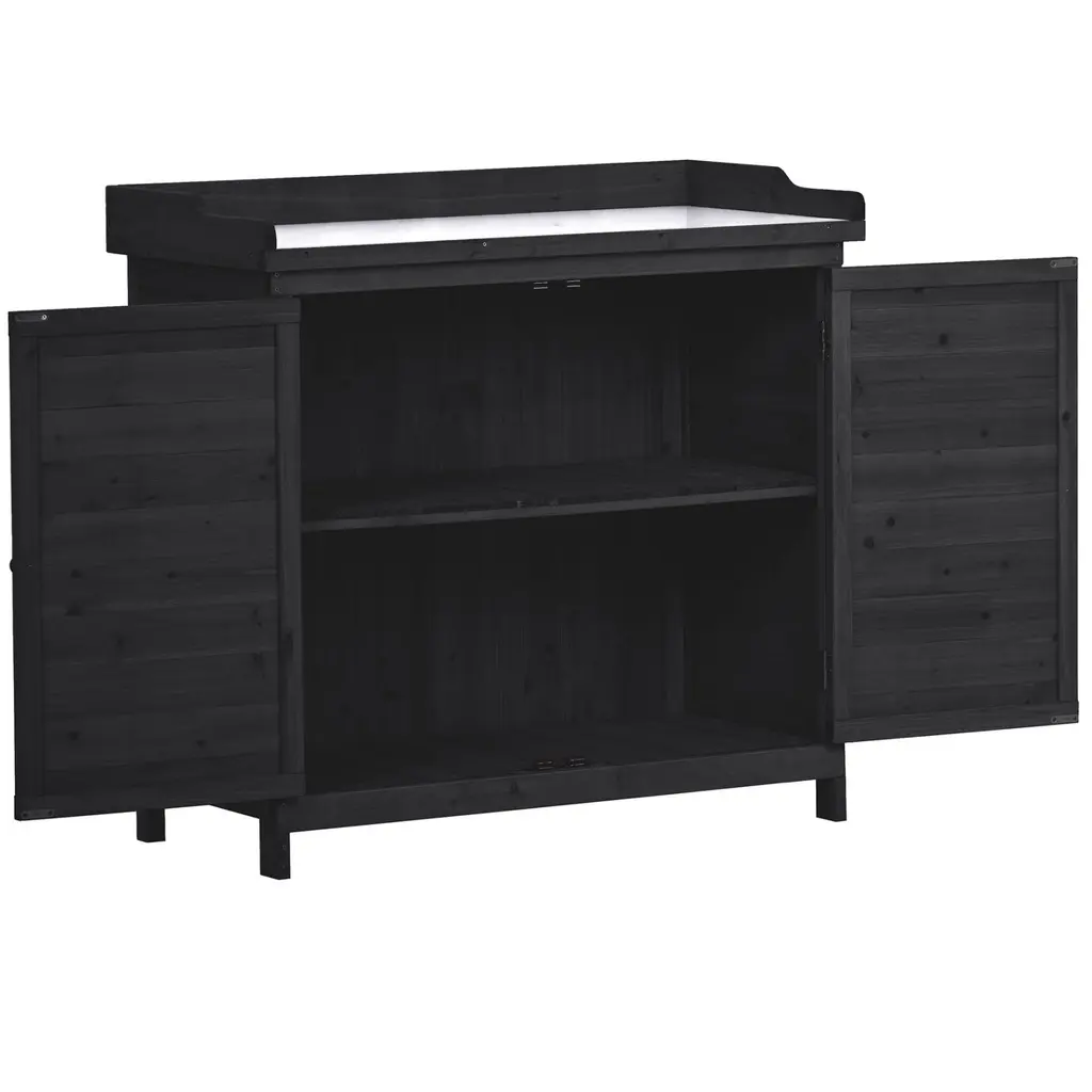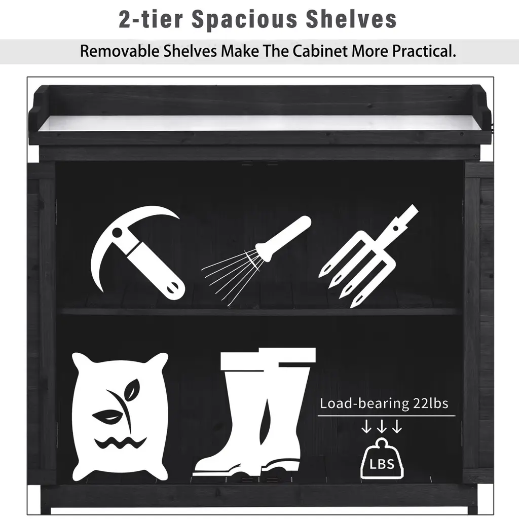 Rustic Solid Wood Garden Potting Bench With Cabinet And Shelves - 37"h - Black