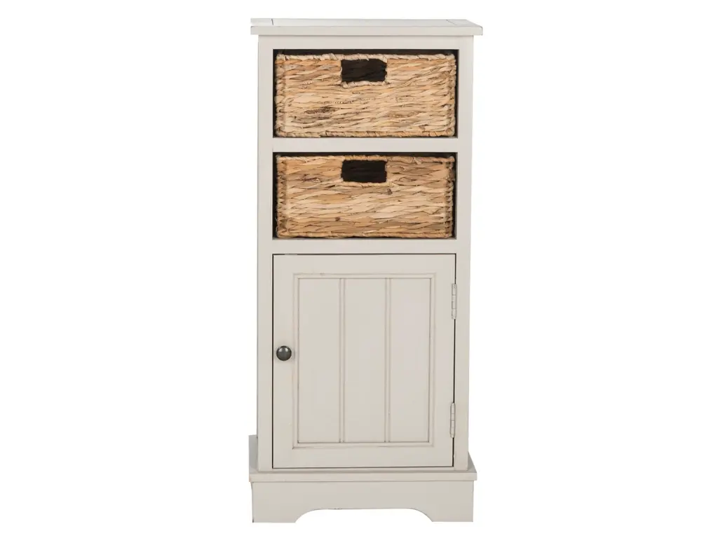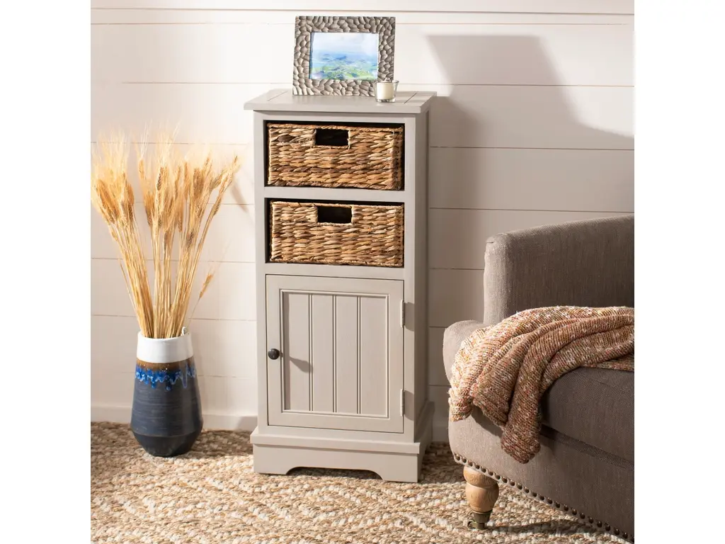 Add a touch of vintage charm to your decor with this stylish storage cabinet. Its rustic gray finish and woven seagrass baskets are a charming addition to your modern farmhouse or country cottage aesthetic. When storage is an issue, the roomy lower cabinet provides plenty of stowaway space.