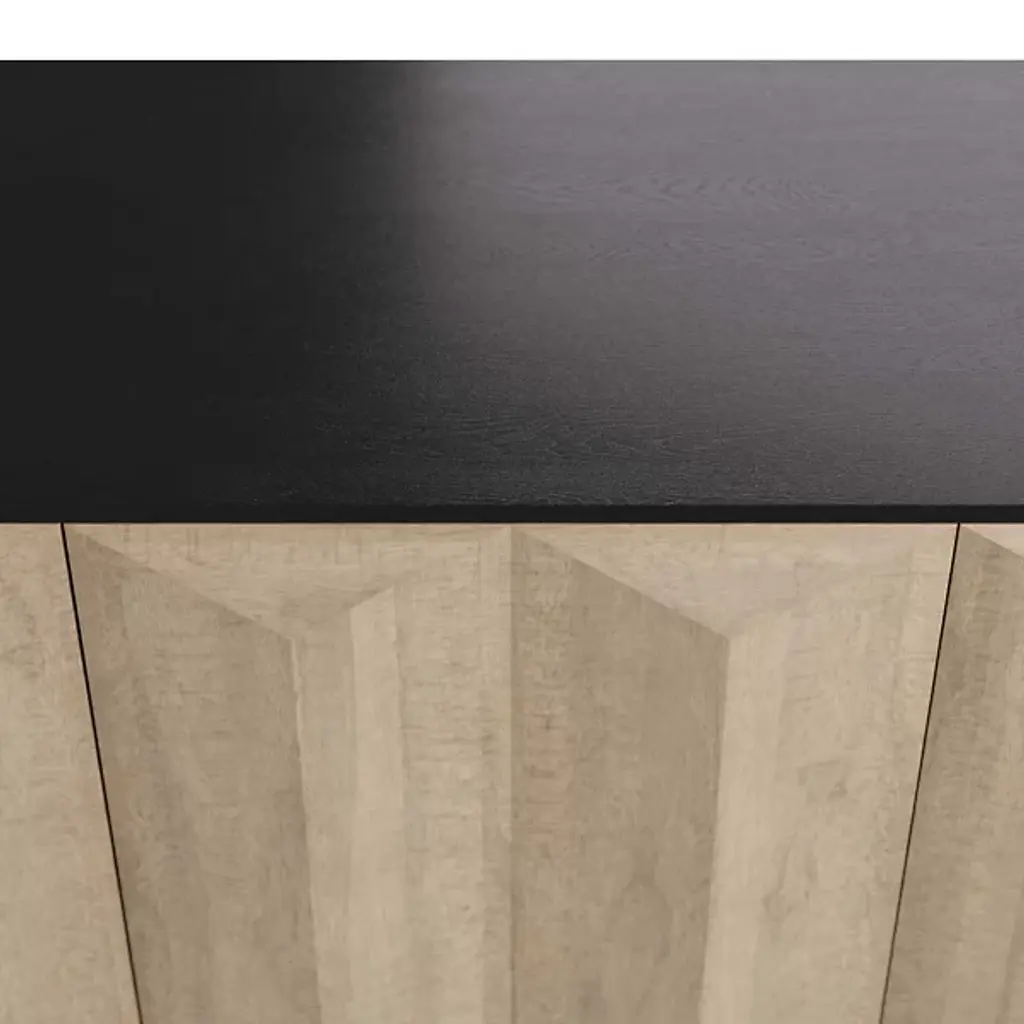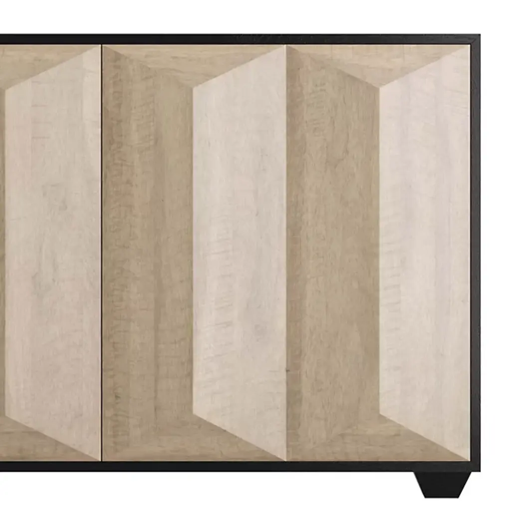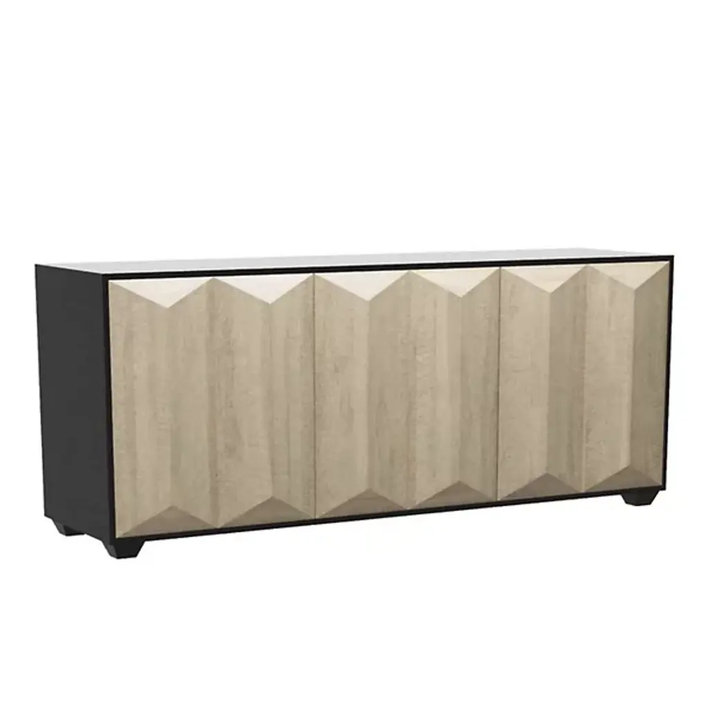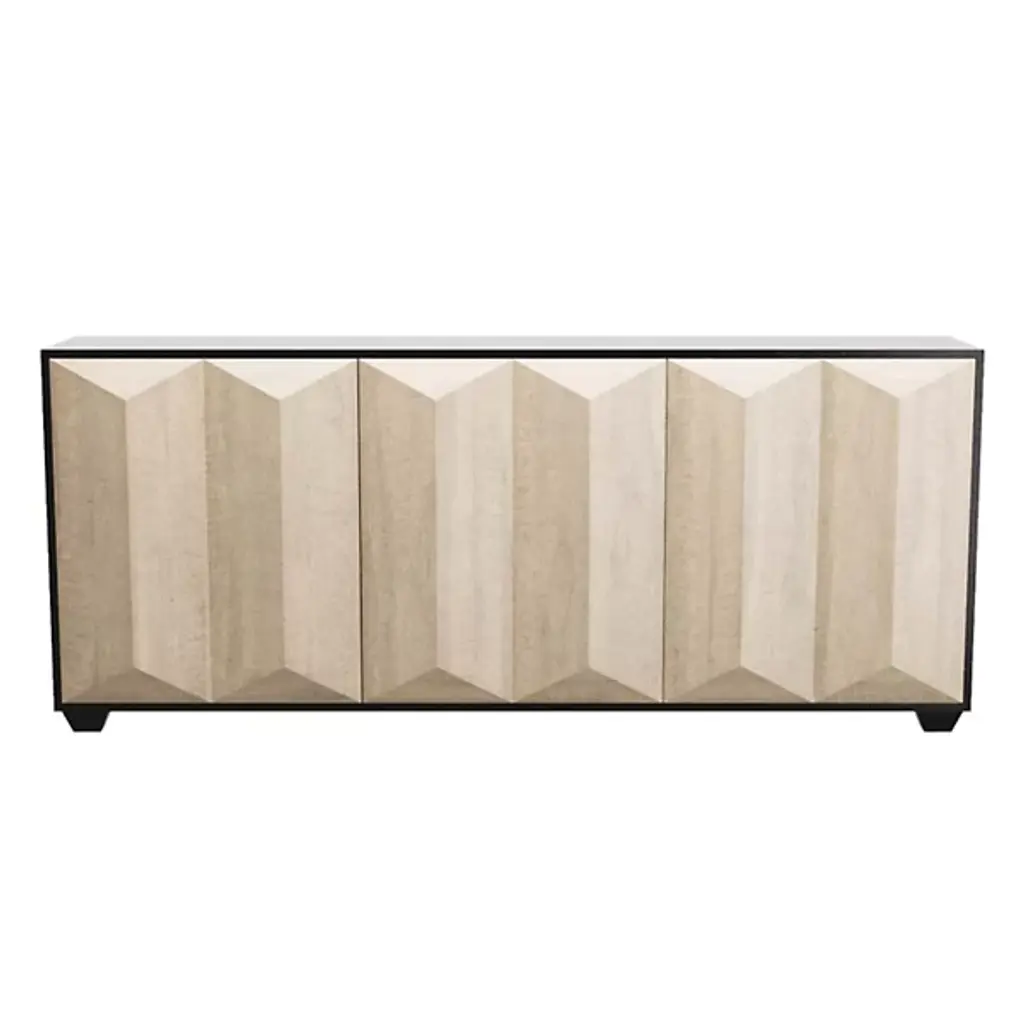 Refresh your living space with the sculpturally crafted Sapphire Credenza by Arteriors. This piece features an intricate wood construction. Sapphire is inspired by the modernist movement, celebrating the style of cast-concrete buildings. The eye is drawn to the clean lines seen throughout the cabinet's facade. Streamlined doors conceal interior shelves, which provide ample amounts of storage space. Place this credenza in your kitchen or hall and quickly access your wares.