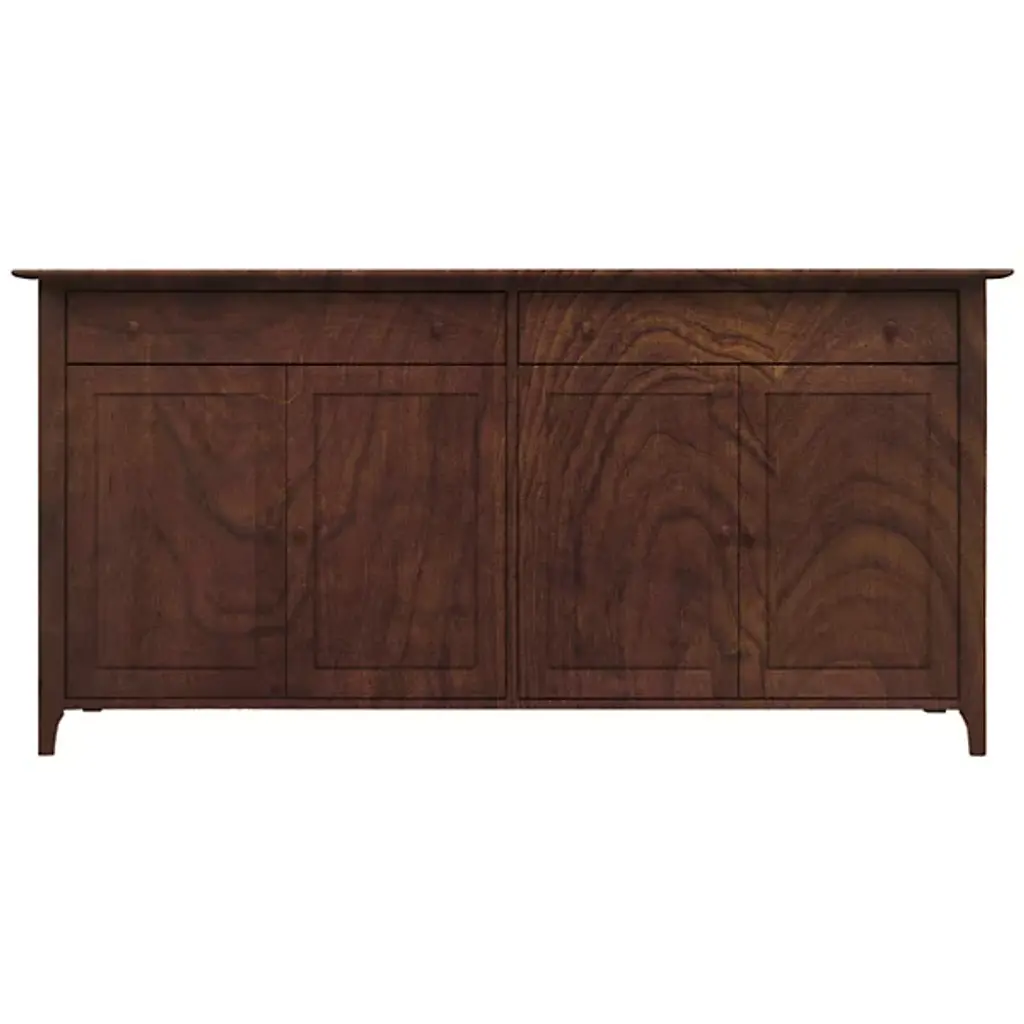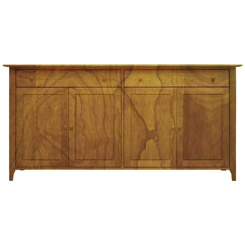 The Copeland Furniture Sarah Buffet - 2 Doors and 5 Drawers has a clean yet comfortable form evocative of Shaker style. This characteristic--and its array of storage options--also makes it a versatile piece in a variety of dining room settings. Made out of solid cherry wood, this buffet is available in your choice of wood tone and cabinet position.
