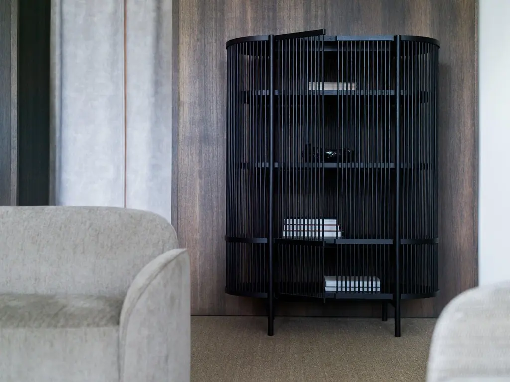 Cabinet Bastone designed by Antrei Hartikainen for Poiat StudioDimensions : H. 160 cm / W. 120 cm / D. 50 cmModel shown in the picture : - Color : Oak - Without doors----Designed by the award-winning master cabinet maker and designer Antrei Hartikainen for Poiat Furniture, the Bastone Low Sideboard creates a natural continuum to the Bastone Collection. Standing at the forefront of art and design, the Bastone cabinets and sideboards showcase Hartikainen’s interest in studying light and shadow and his appreciation of craftsmanship. By expanding the collection with a lower-sized version, the Bastone Low Sideboard introduces the opportunity for media console use. All of the Bastone Collection pieces are available in colours of Oak and Black Oak, with or without doors. The Bastone Collection sideboards and cabinets are manufactured from solid oak in Finland and come in two colour variations, Oak and Black.The origin of the word Poiat summarises both worlds of the company: a small village in the Italian Alps and a word meaning “boys” in one of the Finnish dialects. The love for Italian design aesthetics and heritage combined with the Finnish cultural tradition of collaborative working.