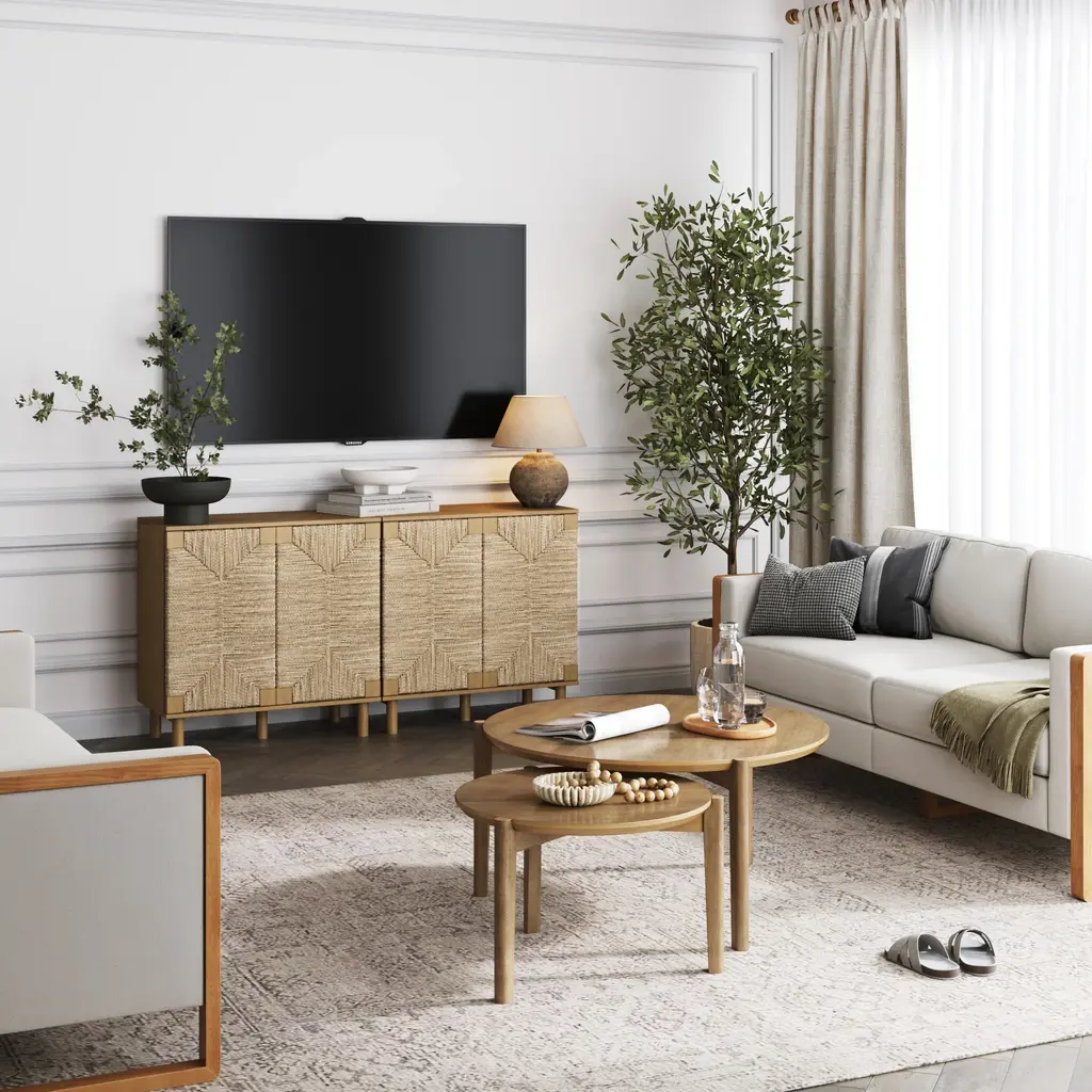 Seagrass Tv Console Credenza Brown (Set Of 2)