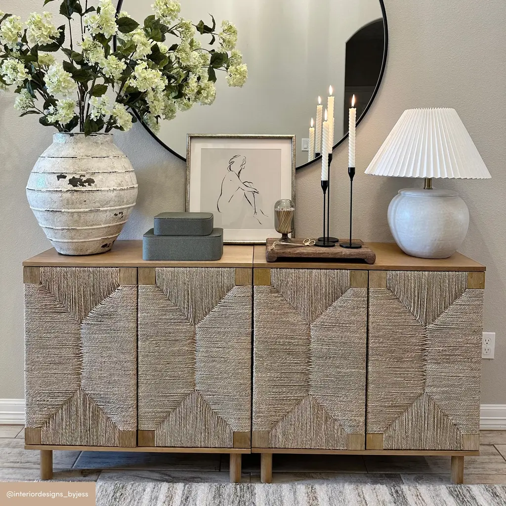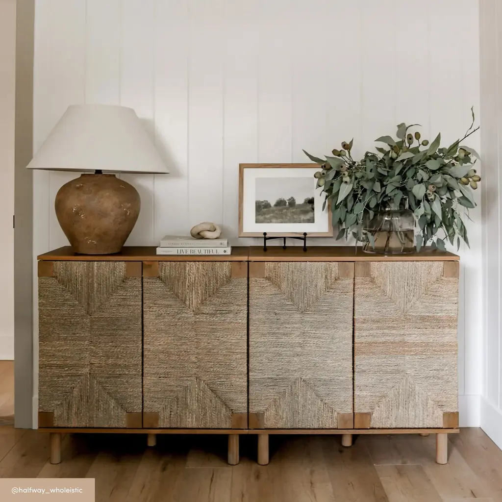 Say hello to Beacon, the perfect textured storage cabinets. A vintaged light brown finish is paired with push-latch natural seagrass cabinet doors for the an on-trend look that fits right in with any decor. An adjustable shelf gives you plenty of space to store records, books, or anything else you want to keep tidy and out of sight; or pair two side-by-side for extra storage. The handcrafted natural finish means some slight variations may occur. Grab this set of 2 cabinets and store things in style!