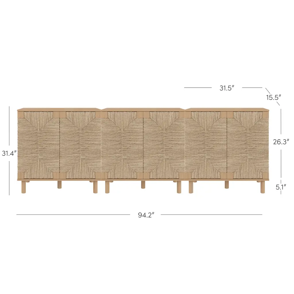 Seagrass Tv Console Credenza Raw Oak (Set Of 3)