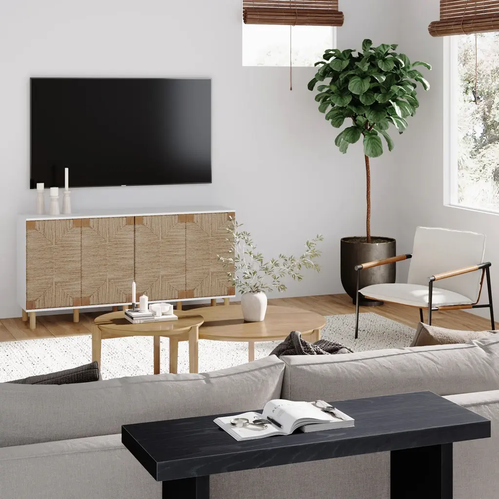 Seagrass Tv Console Credenza White (Set Of 2)