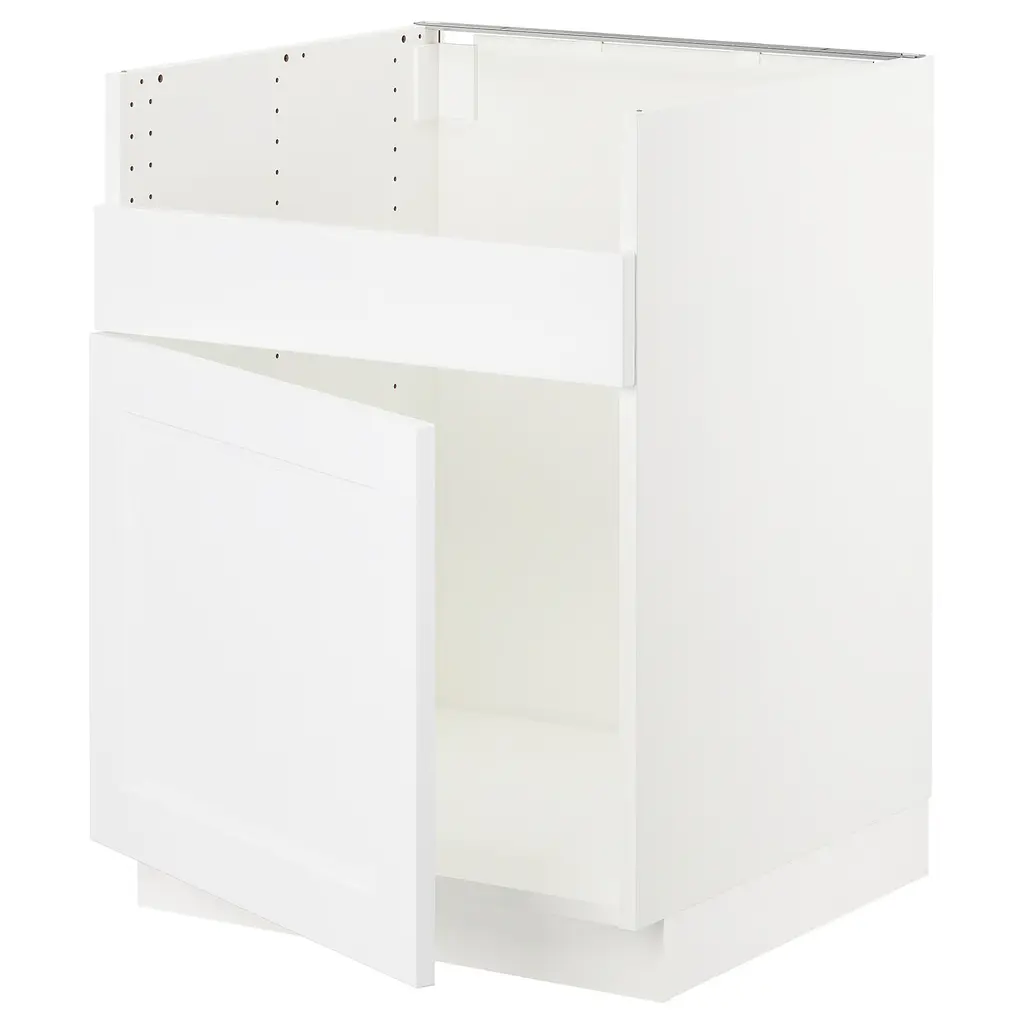 SEKTION Base cabinet for sink - white/Havstorp deep green 24x24x30 ". The door can be mounted to open to the left or right. Sturdy frame construction, ¾" thick. The door damper prevents your cabinet door from slamming by catching the moving door so that it closes slowly, gently and silently.
