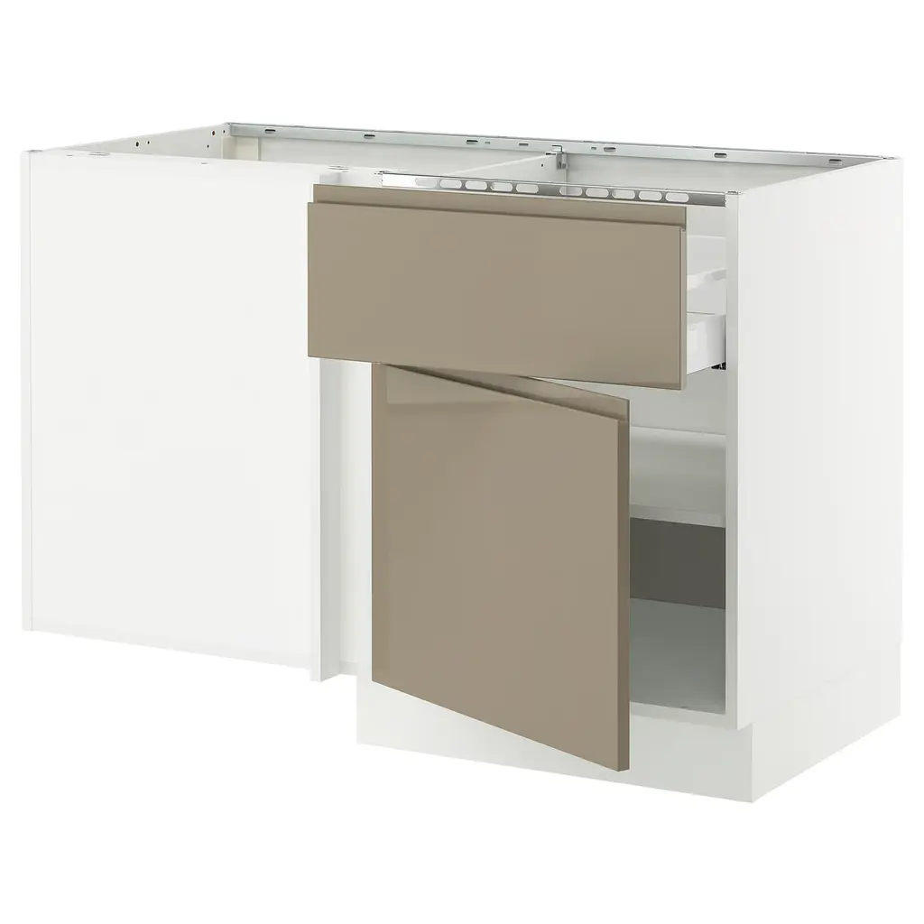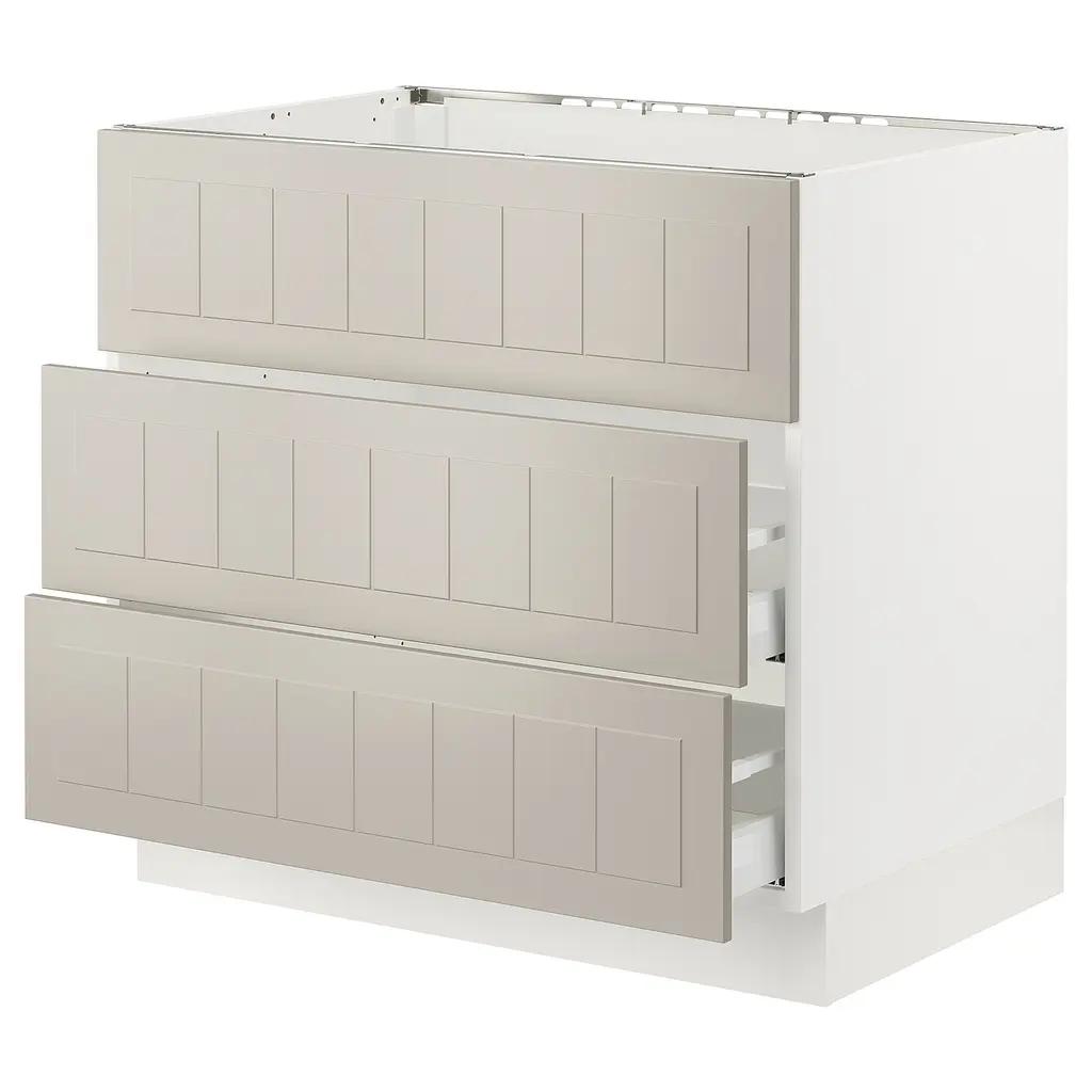 SEKTION / MAXIMERA Base cabinet/p-out storage/drawer - white/Stensund beige 24x24x30 ". MAXIMERA drawer is a smooth-running, full-extension drawer with built-in dampers so that it closes slowly, softly, and quietly. Sturdy frame construction, ¾" thick. Requires a knob or a handle