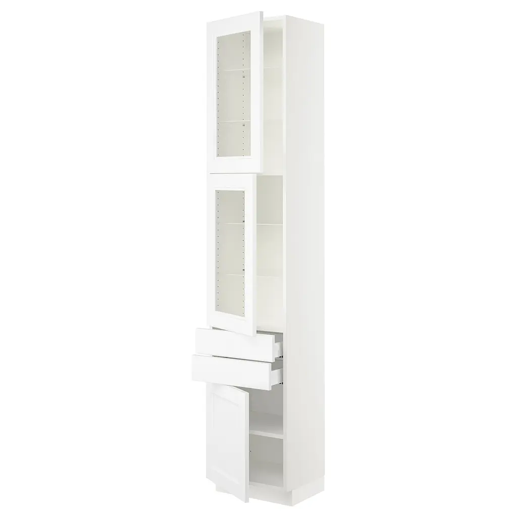 SEKTION / MAXIMERA Hi cb w 2 glass drs/2 drwrs/1 dr - white/Axstad matt white 18x15x90 ". MAXIMERA drawer is a smooth-running, full-extension drawer with built-in dampers so that it closes slowly, softly, and quietly. The door can be mounted to open to the left or right. Requires a knob or a handle