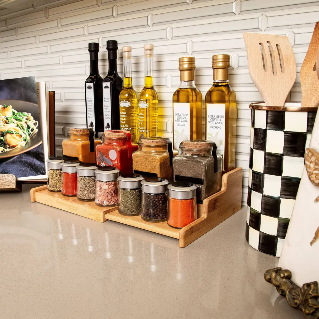 Seville Classics 3-Tier Expandable Bamboo Spice Rack Step Shelf Cabinet Organizer - Brown