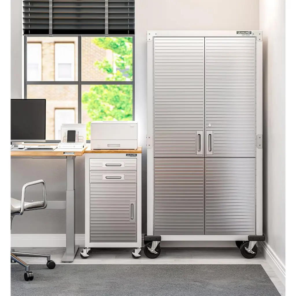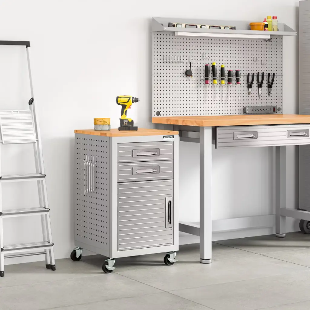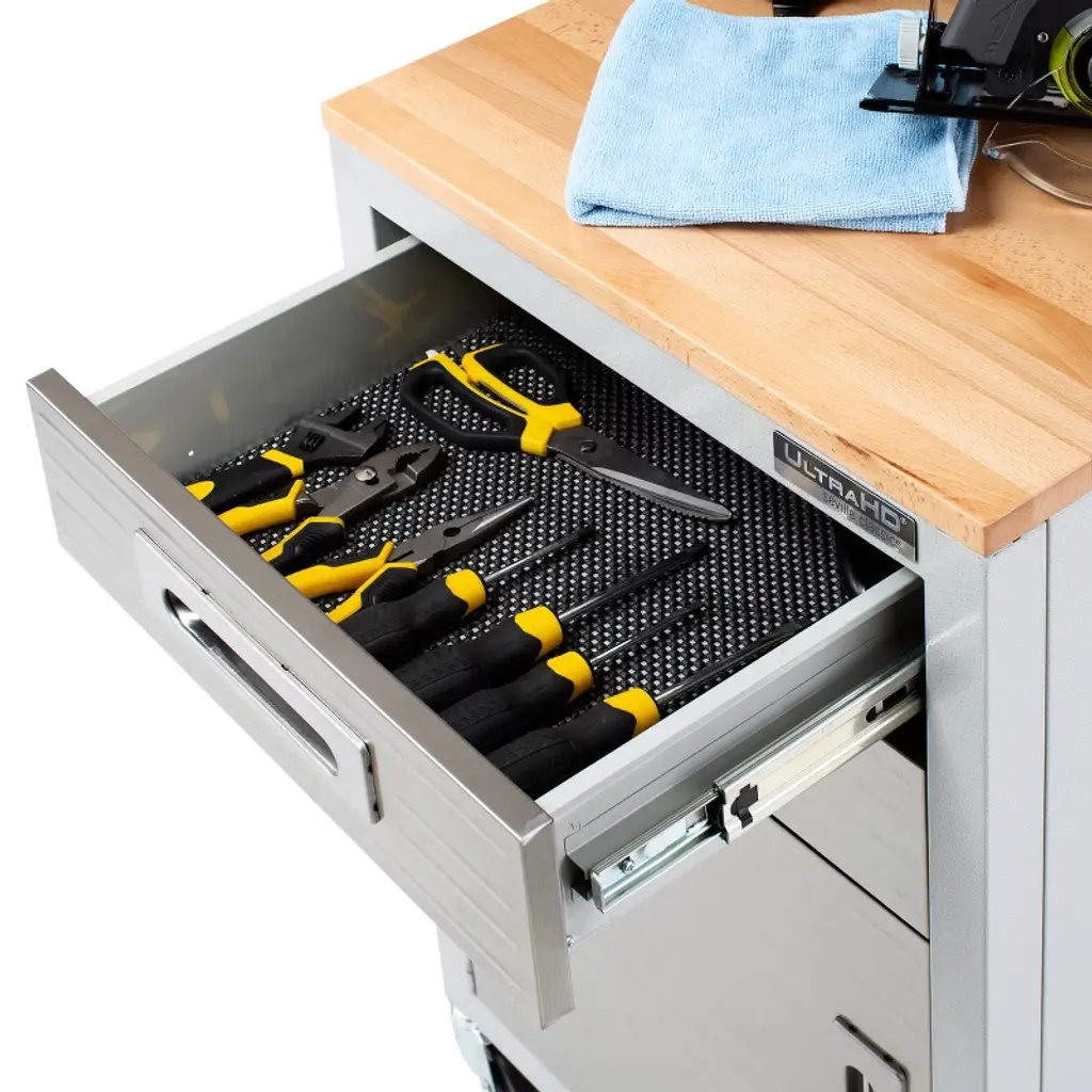 Utility and mobility come together in Seville Classics UltraHD 2-Drawer Rolling Storage Cabinet. Our cabinet is engineered for heavy-duty use with a body constructed of commercial-grade steel. The 3/4" solid hardwood top is intended for use as a work surface for everyone from home mechanics to professional tradesmen. It's the perfect multipurpose rolling cabinet for offices, warehouses, store rooms, and for use around the house.