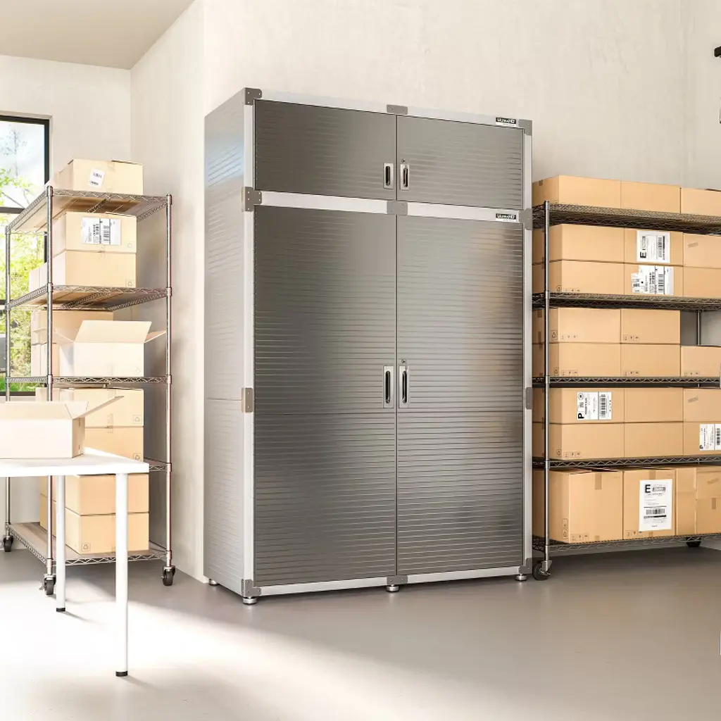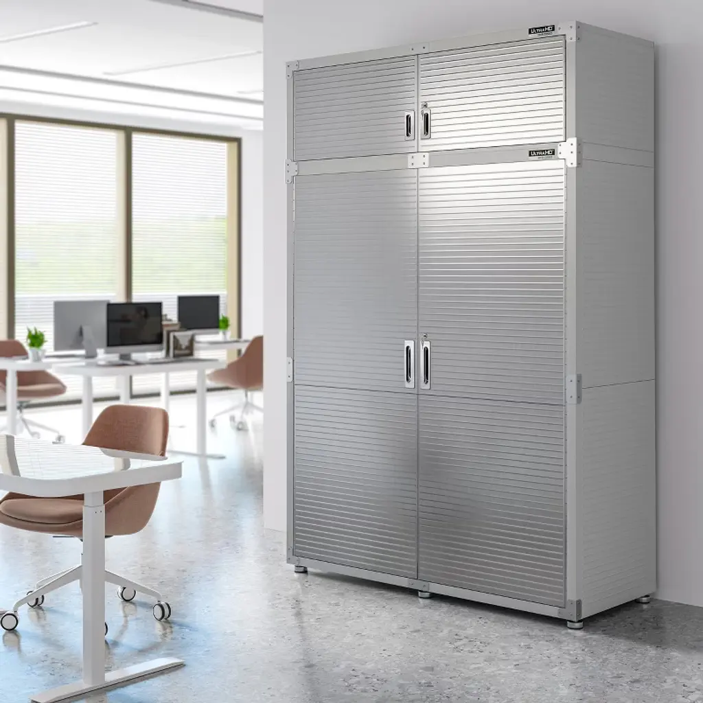 Create additional vertical space to your existing UltraHD Extra-Wide Storage Cabinet with this compatible Cabinet Stacker. The UltraHD Extra-Wide Stacking Top Cabinet by Seville Classics is the perfect combination of quality, design and functionality. Measuring 60" wide by 24" deep by 18.5" high, this cabinet stacker can easily be added to the top of your existing Seville Classics UltraHD Extra-Wide Storage Cabinet to expand your storage space.