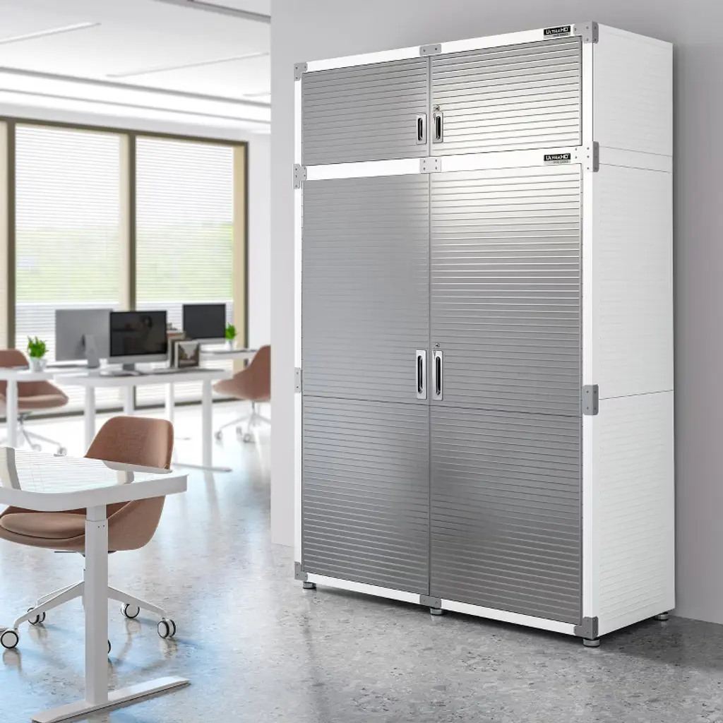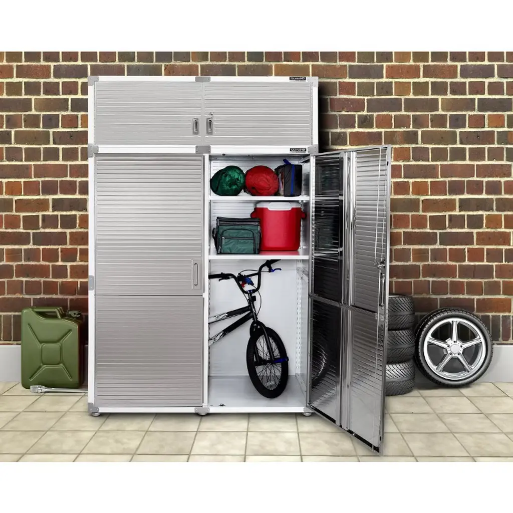 Create additional vertical space to your existing UltraHD Extra-Wide Storage Cabinet with this compatible Cabinet Stacker. The UltraHD Extra-Wide Stacking Top Cabinet by Seville Classics is the perfect combination of quality, design and functionality. Measuring 60" wide by 24" deep by 18.5" high, this cabinet stacker can easily be added to the top of your existing Seville Classics UltraHD Extra-Wide Storage Cabinet to expand your storage space.