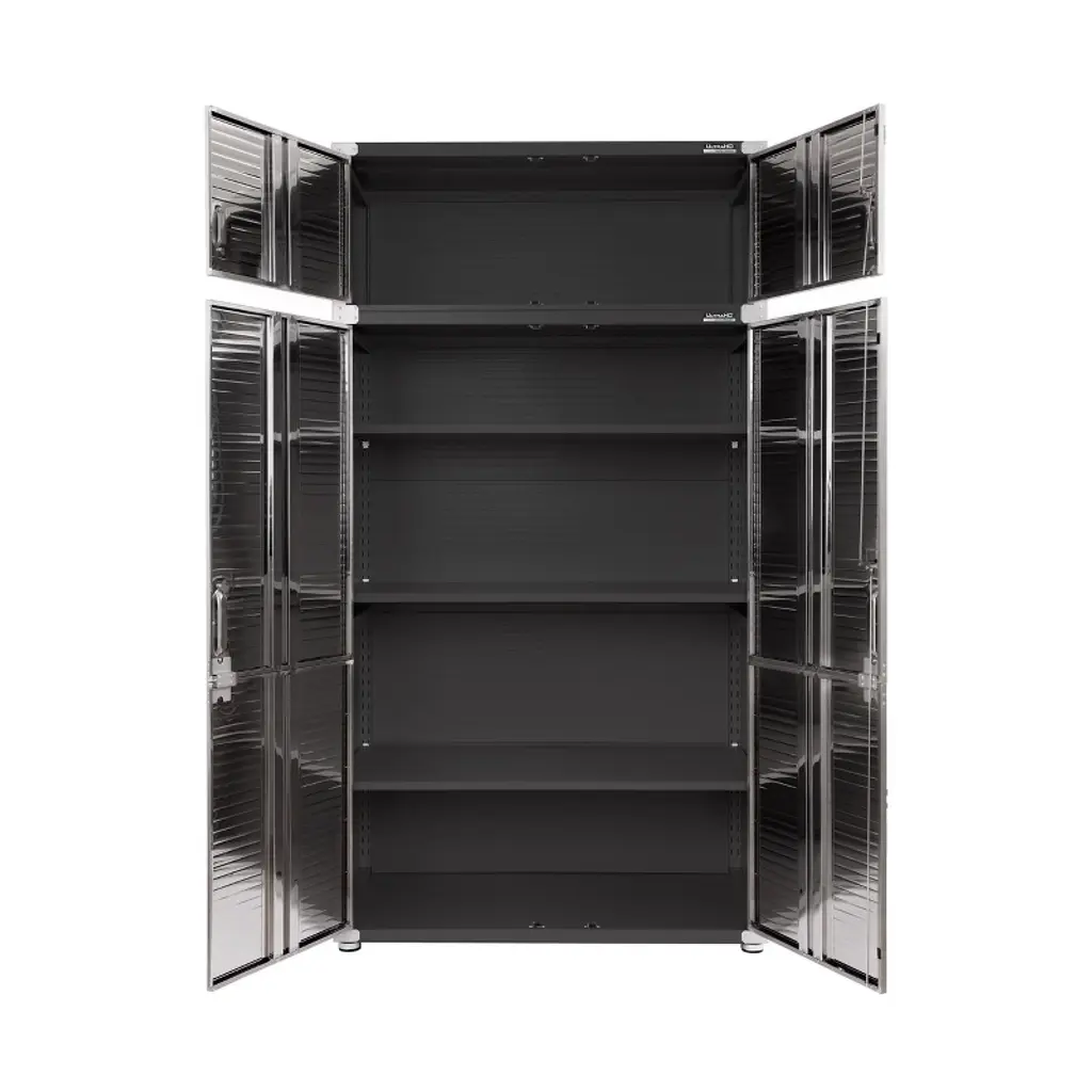 Create additional vertical space to your existing UltraHD Mega Storage Cabinet with this compatible Cabinet Stacker. The UltraHD Mega Stacking Top Cabinet by Seville Classics is the perfect combination of quality, design and functionality. Measuring 48" wide by 24" deep by 18.5" high, this cabinet stacker can easily be added to the top of your existing Seville Classics UltraHD Mega Storage Cabinet to expand your storage space.