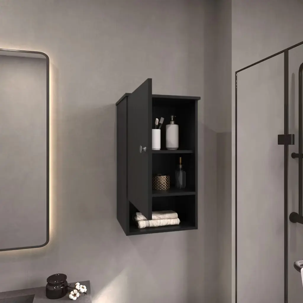 Sevobal Bathroom Storage Cabinets 28 Inch Tall Medicine Cabinets With Two Interior Shelves And Open Shelf For Bathroom Organization, Black, 30"*19"*4"