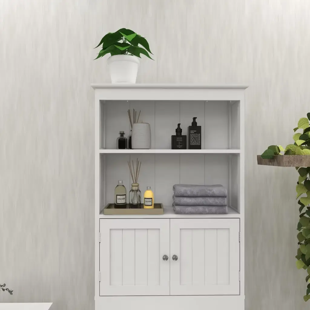 Sevobal Bathroom Storage Cabinets, Double Door Lockers With Open Storage Shelf, Freestanding Storage For Bathroom, White, 25.98"*9.05"*69.92"