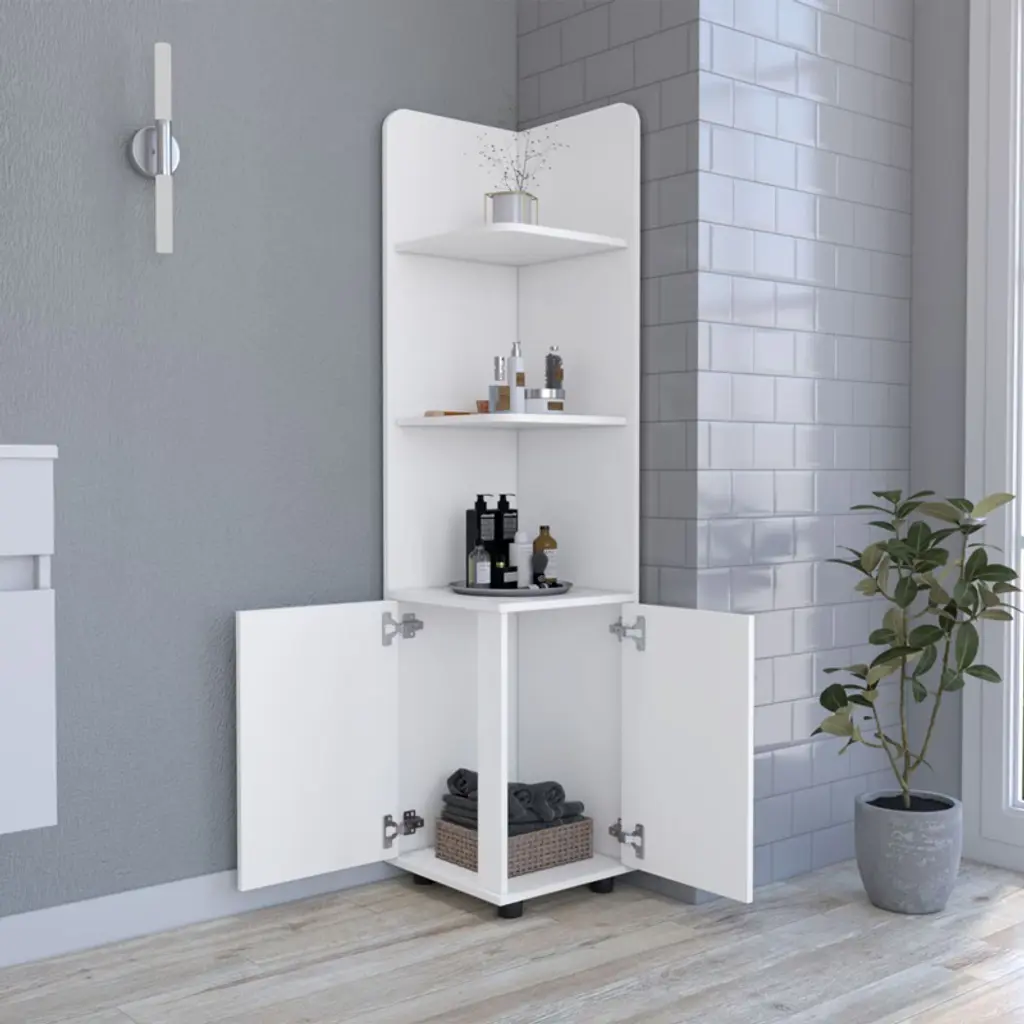 SEVOBAL freestanding linen cabinet combines functional storage with modern design. The two-door base provides enclosed space for private items, while three open shelves offer convenient access to daily necessities. Perfect for organizing towels, toiletries, and bathroom essentials, its space-conscious design fits comfortably in any corner. The elevated base adds contemporary flair while protecting your storage from moisture.