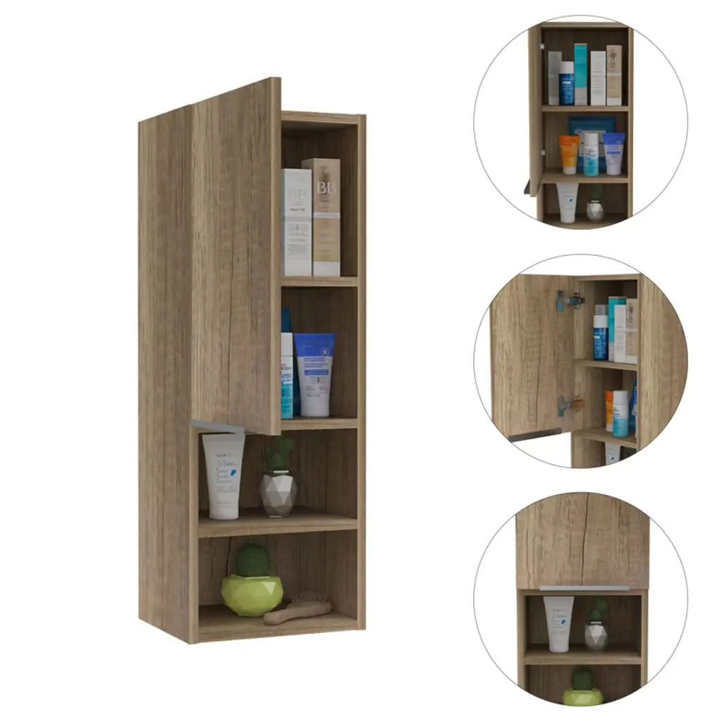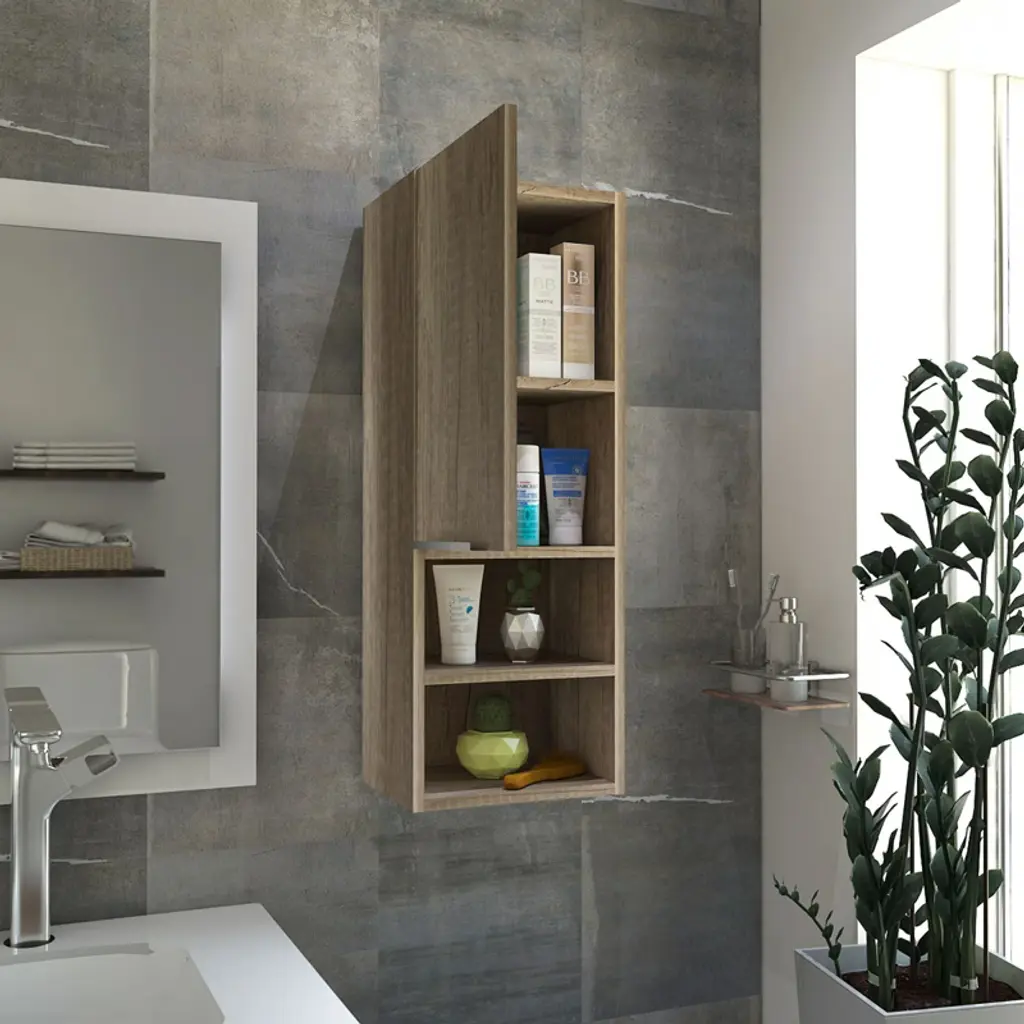 Sevobal Bathroom Storage Cabinets Multi-functional Storage Cabinet, Dual Interior Shelves And Dual Open Shelves For Bathroom, Brown, 15.7"*15.7"*4.7"