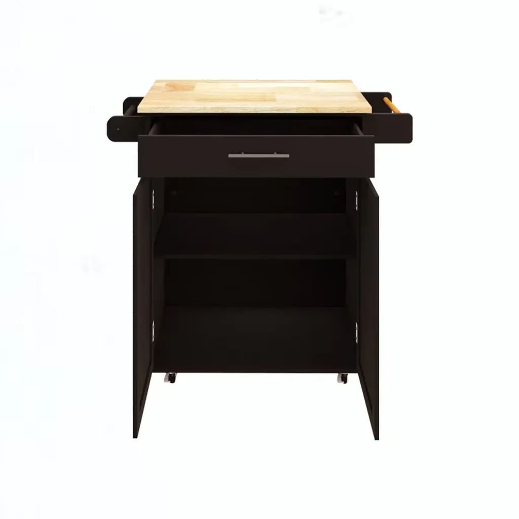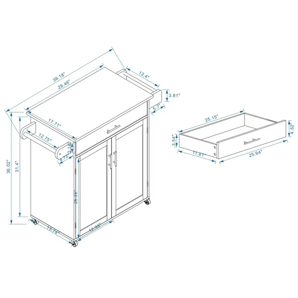 Add extra storage space to your kitchen with this practical kitchen cart! The countertop can prep and serve food, while the wide drawer, open shelf and large cabinet offer ample storage space for various kitchenware and tableware. The smooth and waterproof surface is easy to clean with a damp cloth. With universal casters, you can easily move the rolling serving trolley anywhere. Add practicality and style to your kitchen with our versatile and user-friendly kitchen cart.