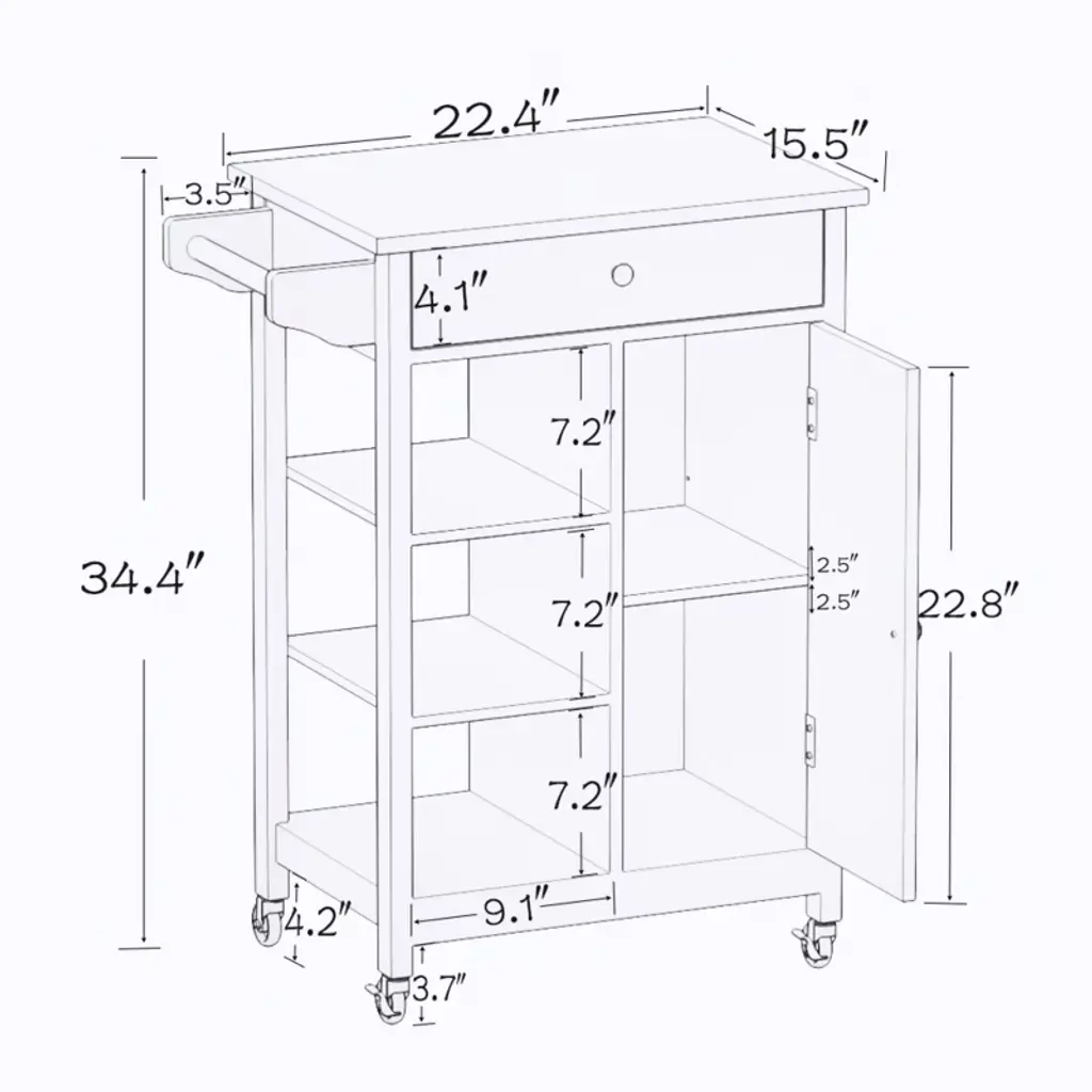 Enhance your cooking and entertaining experience with this essential kitchen accessory with various storage solutions to meet your kitchen needs. Designed with a wide counter top, convenient open shelf, side seasoning rack, cabinet and a towel rack, this cart offers ample storage space for wine, tableware, food and dishes.