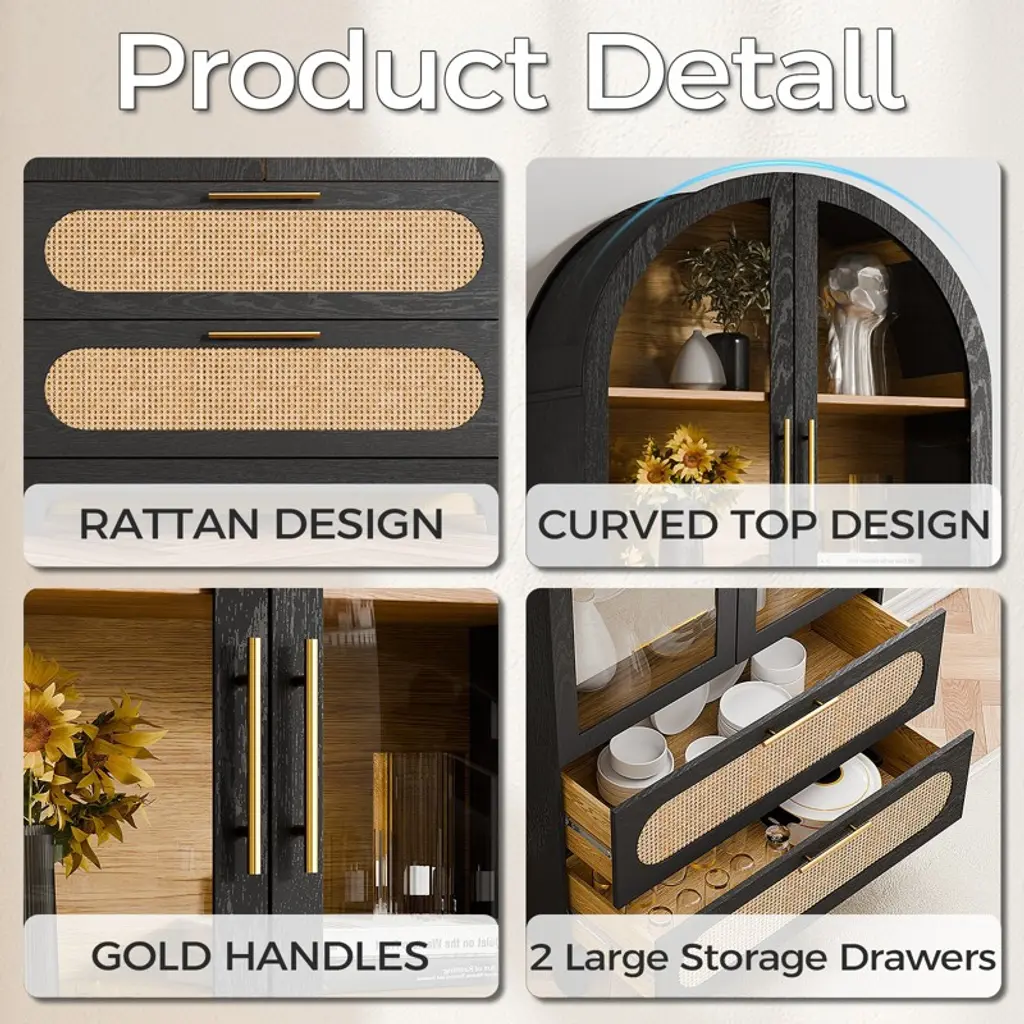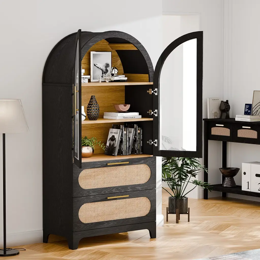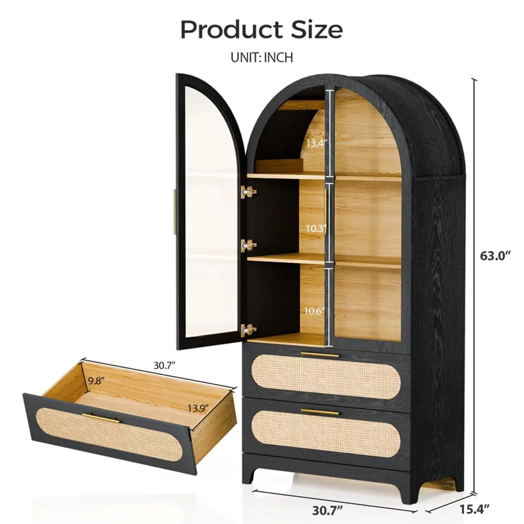 Sevobal Utility Storage Cabinets Arched Organizer With 2 Doors For Living Room, Bedroom, Kitchen, 2 Drawers, Black, 15.4"*30.7"*63"