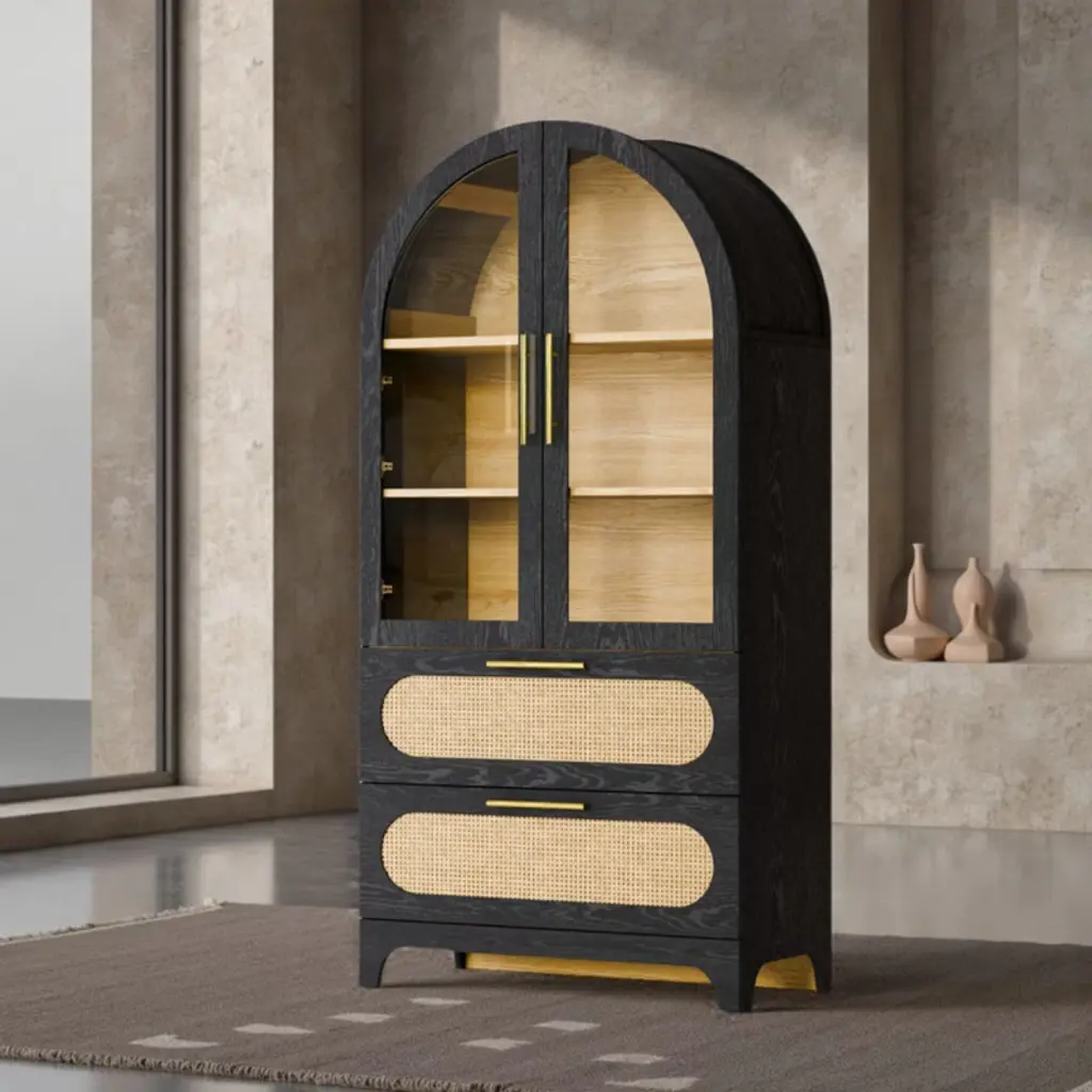 This stylish storage cabinet combines the best of both worlds with two glass-door compartments and two practical drawers. The transparent doors beautifully display your favorite items while keeping them dust-free, and the spacious drawers offer hidden storage for less decorative belongings. The smooth-operating doors and drawers ensure easy access, while the modern design elevates your interior decor. Perfect for organizing while showcasing your treasures in an elegant, functional way.