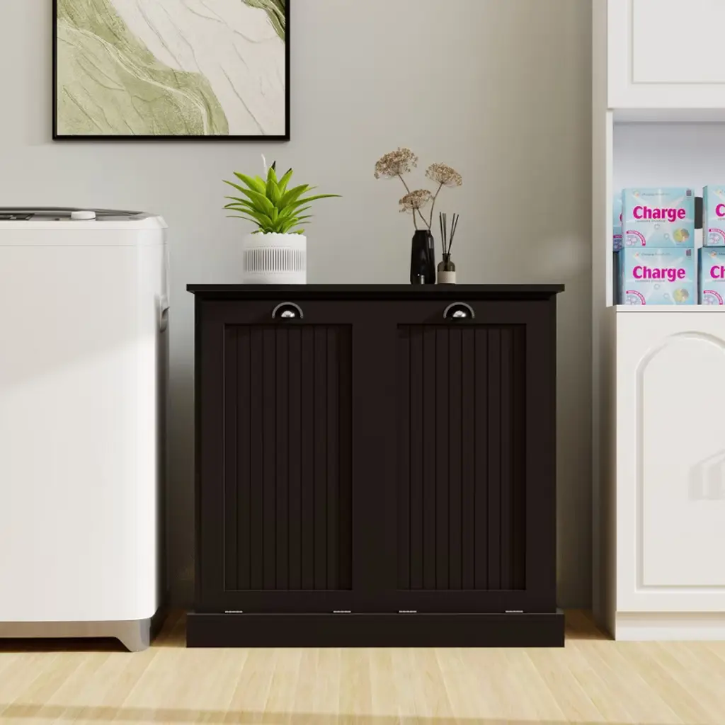 Sevobal Utility Storage Cabinets, Closed Cabinet With Doors And Internal Shelves For Living Room Kitchen Hallway, Black, 32.6"*14.48"*31.5"