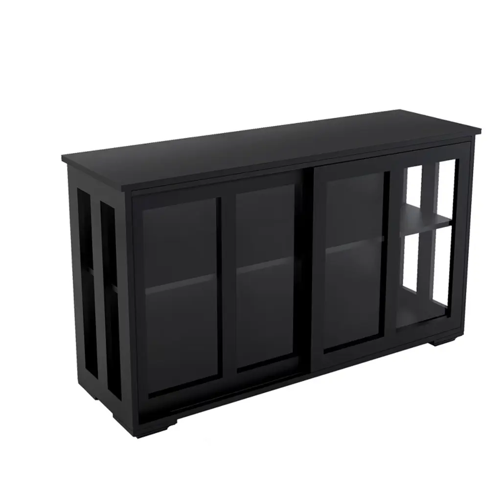 Sevobal Utility Storage Cabinets, Freestanding Storage Cabinet With Transparent Sliding Doors For Living Room Kitchen, Black, 41.92"*12.99"*24.6"