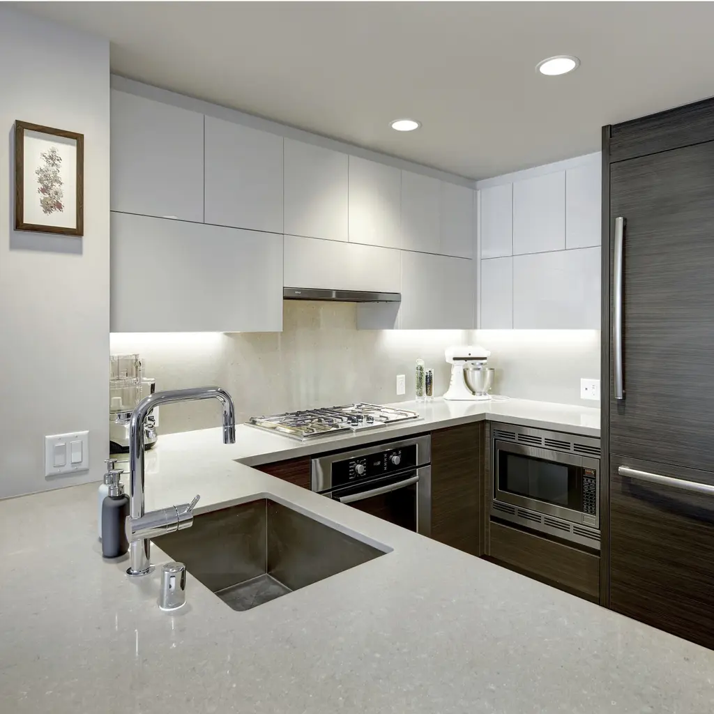 The SG150 is a shallow profile undercabinet fixture, measuring merely 1?. With an on/off and three-way color temperature switch built into the fixture, the user can select between a warmer 2700K tone, a natural 3000K or 4000K light outputs with perfectdiffusion. Fixtures are dimmable with most common TRIAC or ELV Dimmers. Linkable up to 200W with Direct Connectors (SG-DC) or Connecting Cables (SG-CC) of various lengths. Fixtures can be hardwired using the Hardwire Box with a built-in switch (SG-150-WB) or plugged directly into a standard wall outlet with a Cord and Plug (SG-PC). Mounts easily with included captive screws. Fixtures are equipped with (1) SG-DC Direct Connector and (1) SG150-KOC Knock Out Clamp.