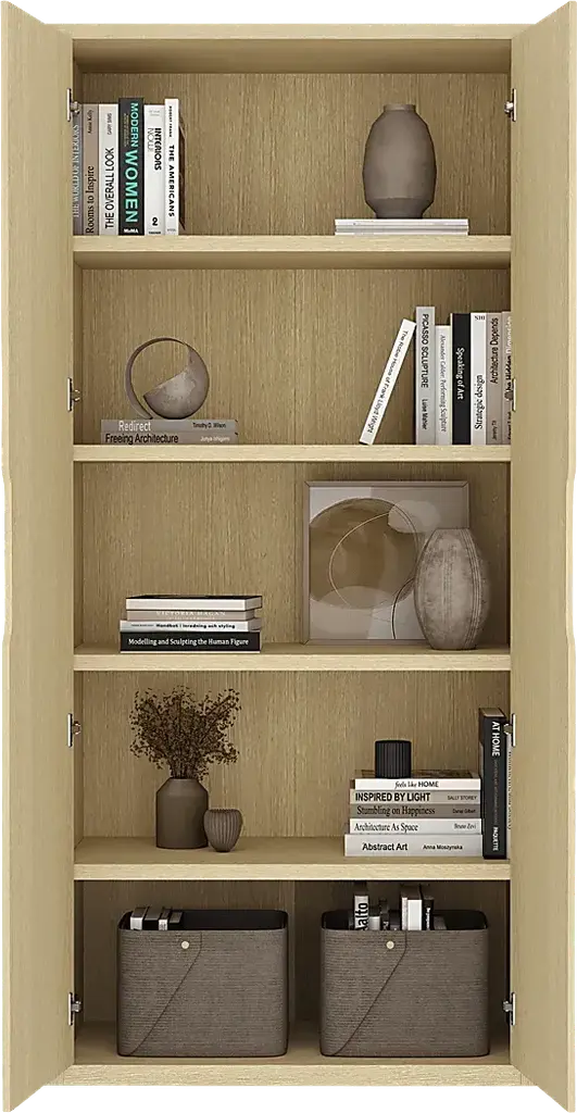 The Shadebooks II natural storage cabinet brings grounded elegance and tactile richness to modern interiors. With a focus on sculptural form and refined simplicity, each piece features clean lines, tailored silhouettes, and signature cutout pulls that double as subtle design statements. This cabinet is thoughtfully crafted with adjustable shelving and ample storage, offering functionality without compromising on style. Finished in warm, wood-grain tones, Shadebooks is designed to blend seamlessly into any space. Timeless yet distinctive, this piece offers a harmonious balance of quiet beauty and everyday utility. Customer assembly is required.