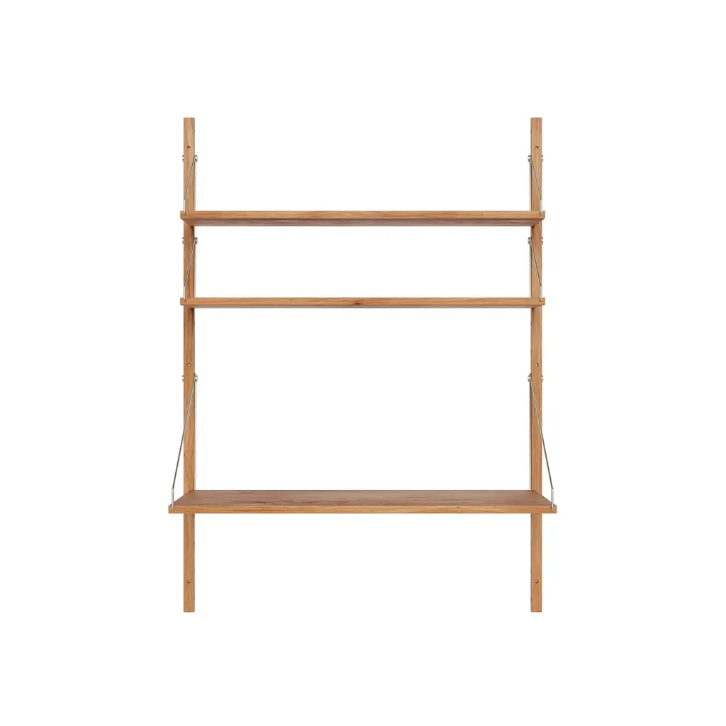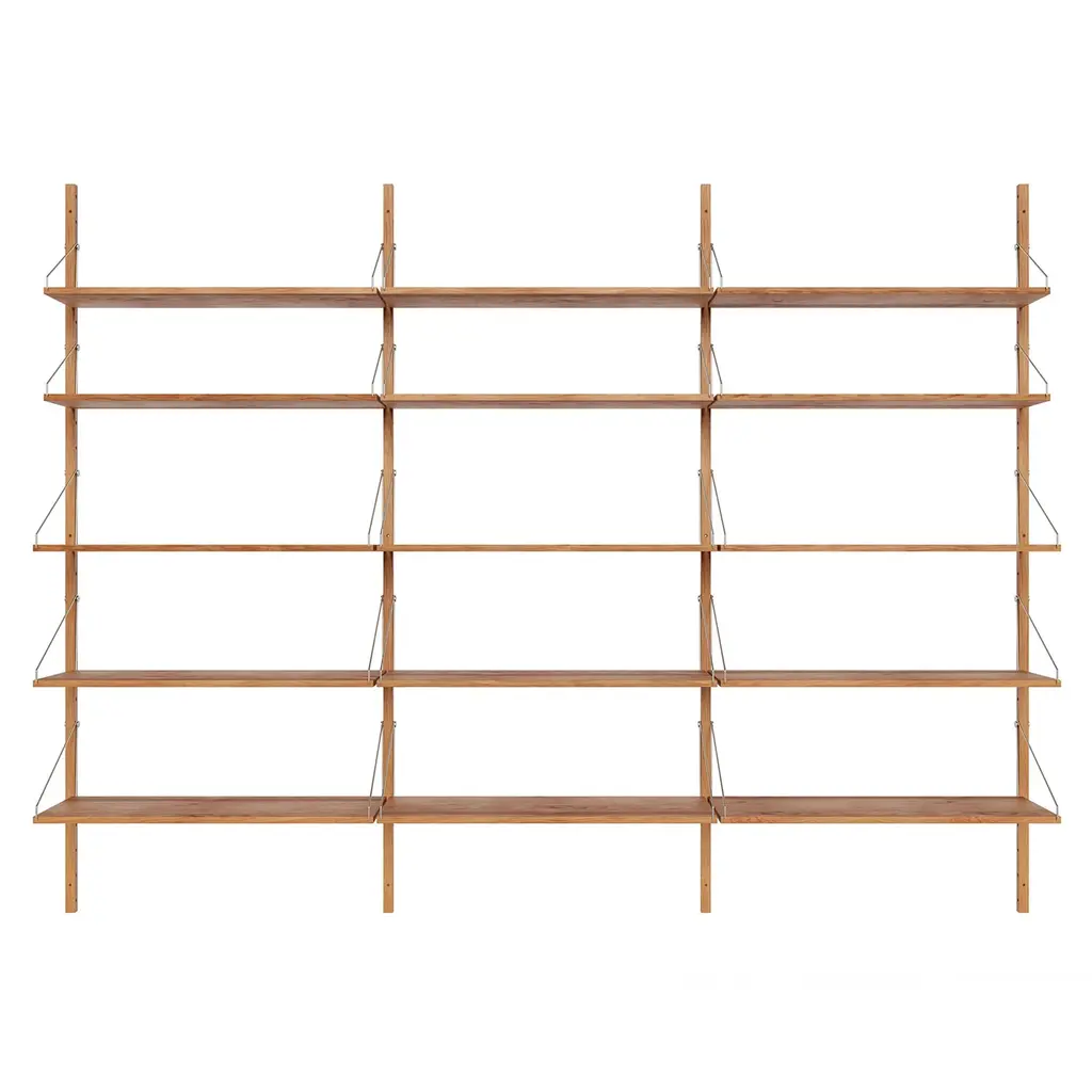 Frama's essential Shelf Library rethinks the tradition of Danish Modern wall storage in beautifully crafted solid oak. Made from durable and time-honored materials, designer Kim Richardt's modular system suits nearly any space, including the kitchen, bathroom, study and dressing areas. Easily fastened to the wall with wood rails and stainless steel screws, the units are available in 3 widths, a choice of heights and natural, white or dark oiled oak finishes. Each individual shelf holds up to 55 pounds (25 kg) and can be situated in a range of positions and the wall system can also be customized with a range of add-ons. Those seamlessly integrated options include high and low cabinets, a desk section which also works for larger items like record players, plants and art objects, and a wardrobe section with a convenient rail for hangers.