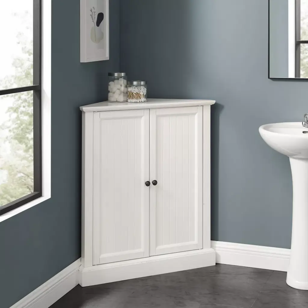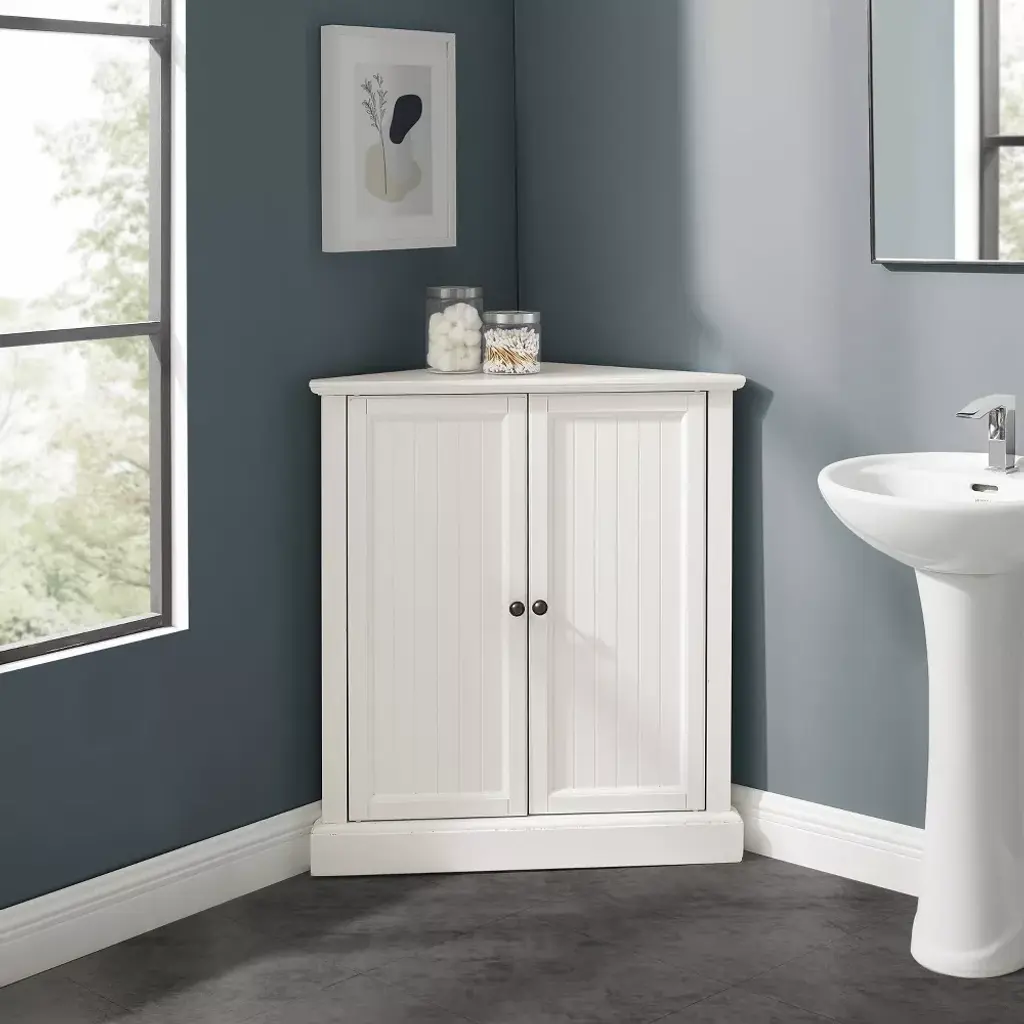 Shoreline Stackable Corner Pantry White - Crosley: Beadboard Door Design, Adjustable Shelf, Coastal Style