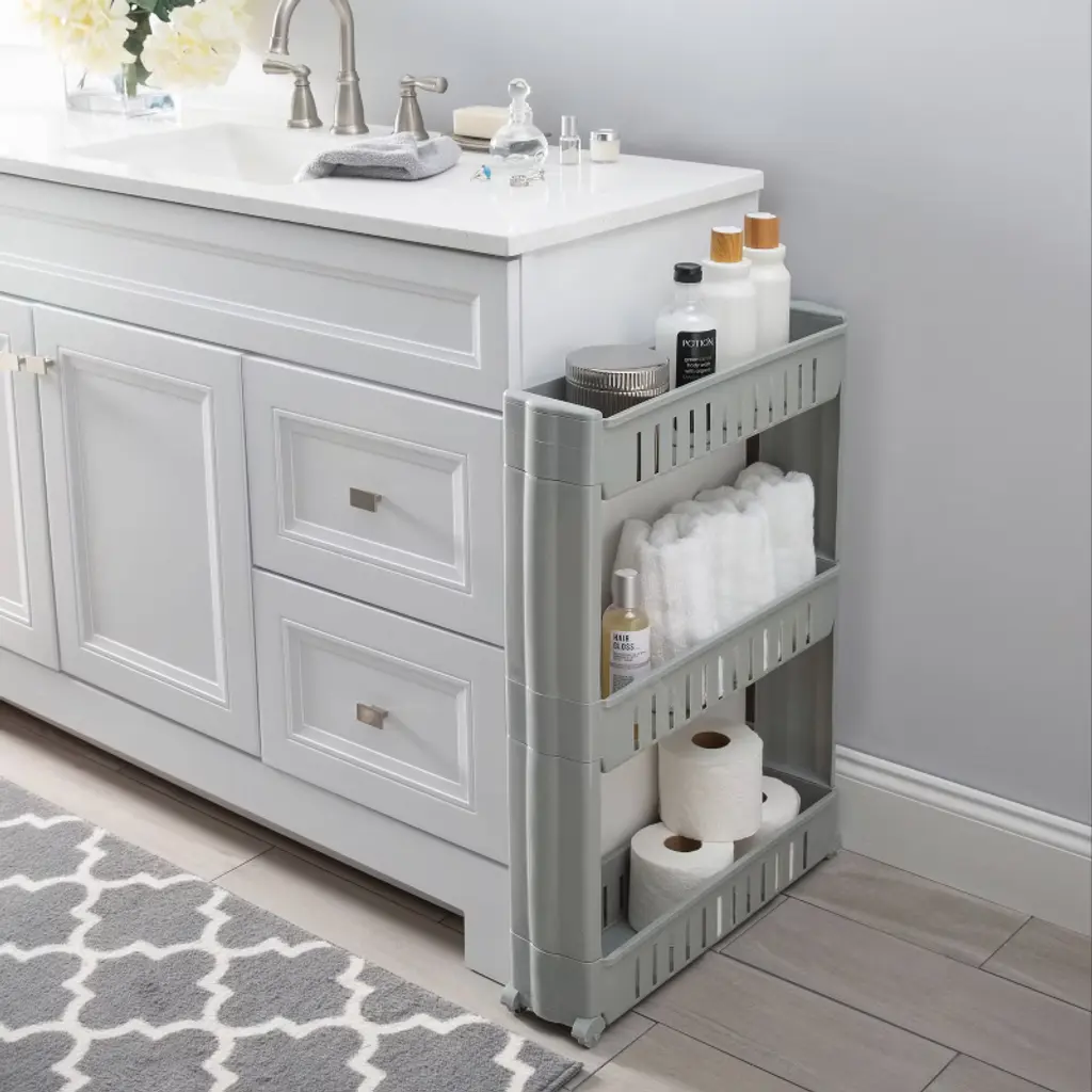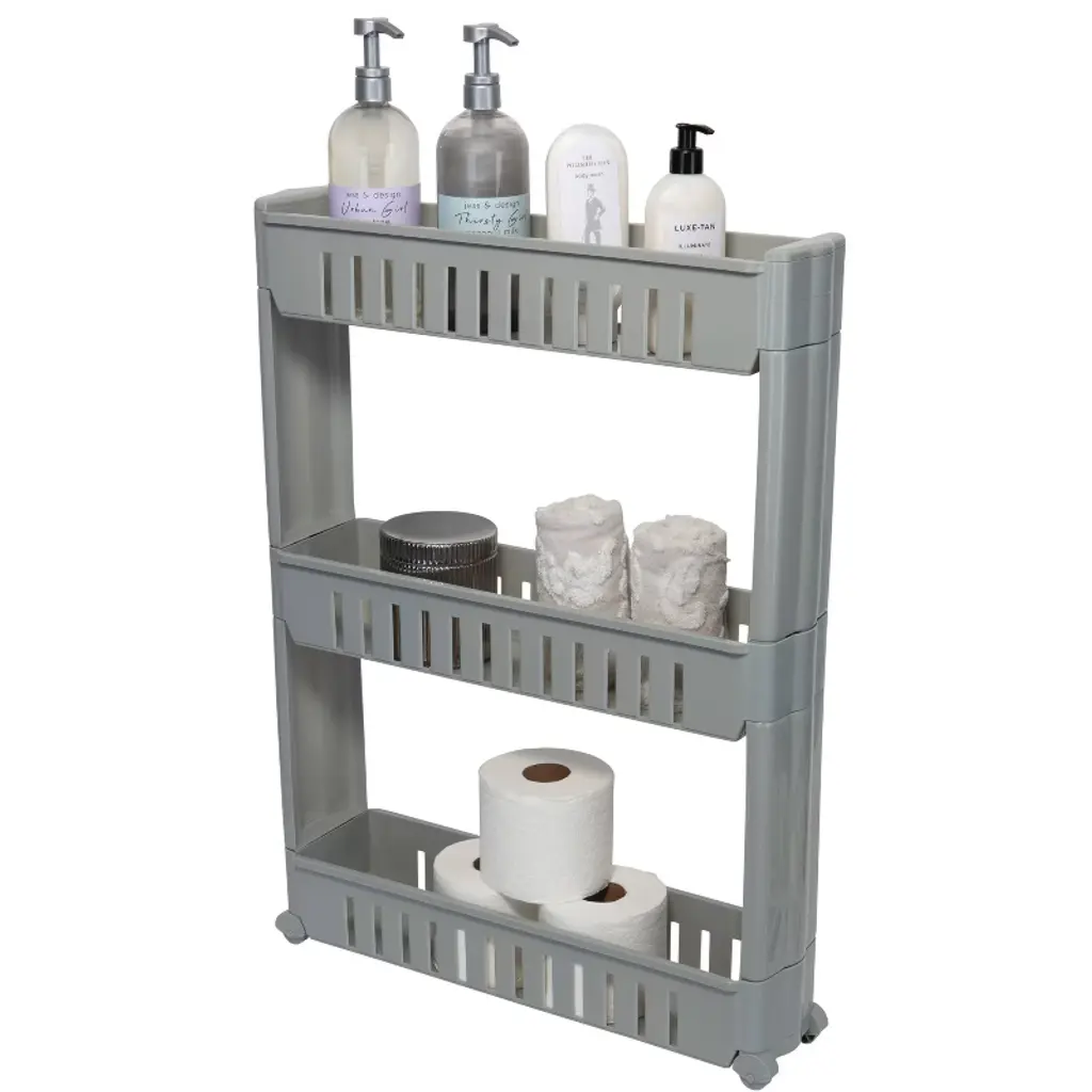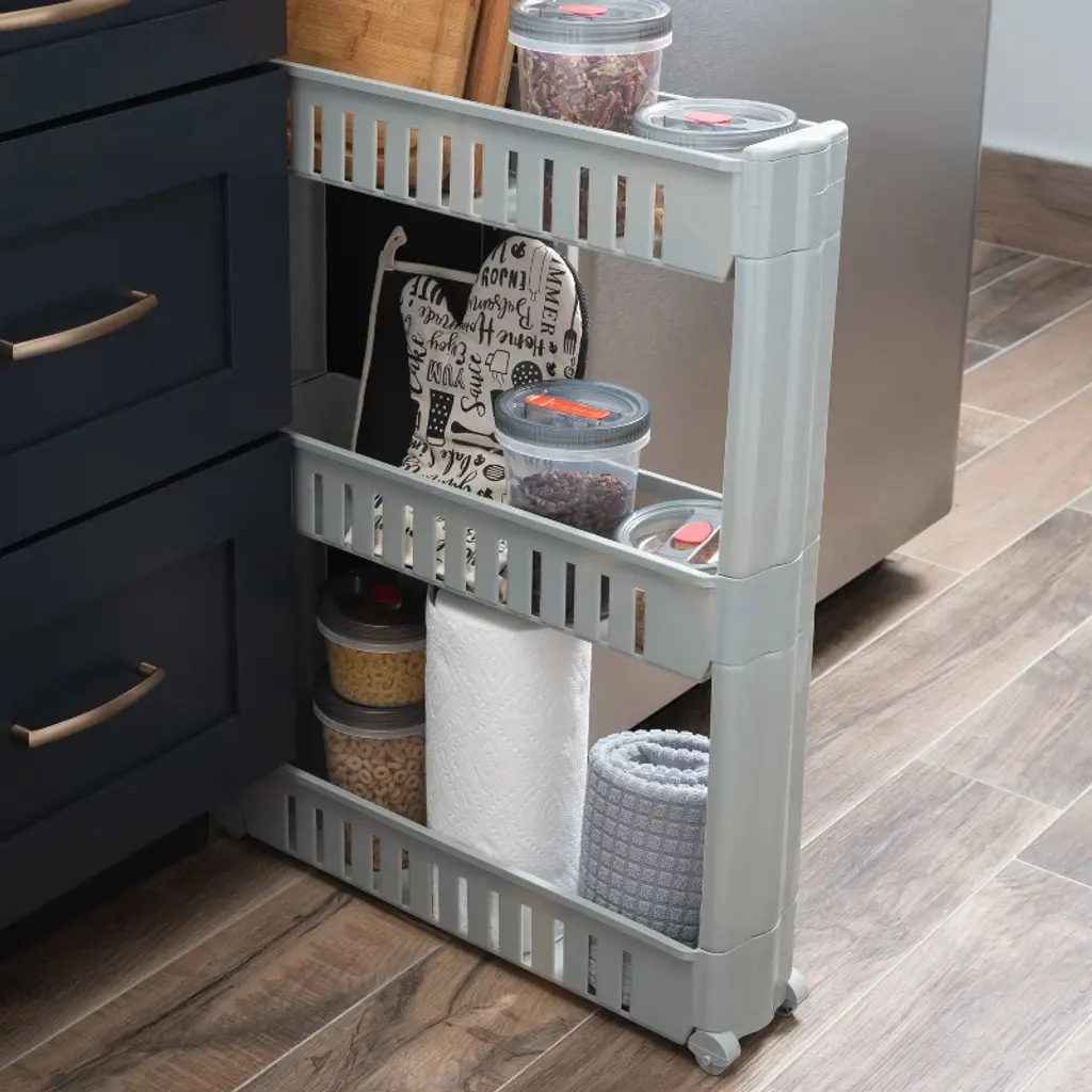 Simplify 3 Tier Slim Rolling Organizer Rack With Wheels Gray Kennedy International: Slim Rolling Storage Cart