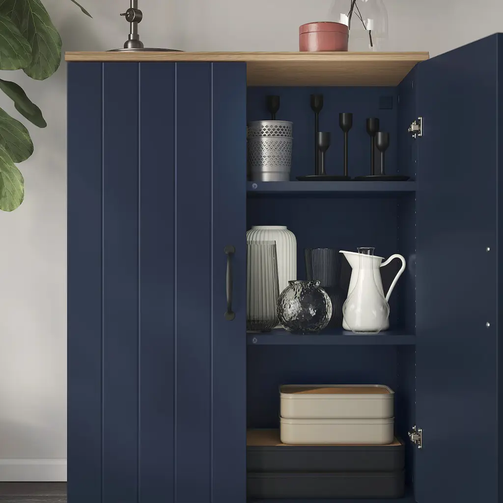 SKRUVBY Cabinet with doors - black-blue 27 1/2x35 3/8 ". The furniture in the SKRUVBY series is designed to go well together. Combine and match them as you like or use each piece of furniture as a beautiful solitaire. The oak look of the top panel creates a warm and natural look.