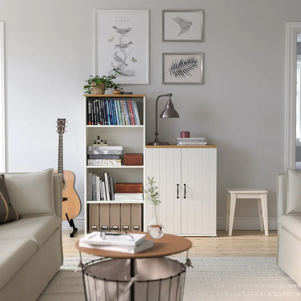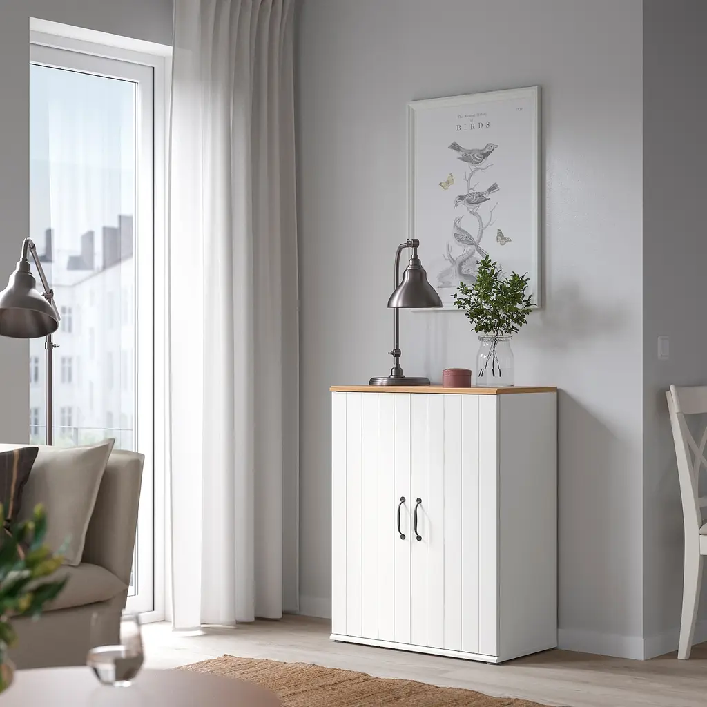 SKRUVBY Cabinet with doors - white 27 1/2x35 3/8 ". The furniture in the SKRUVBY series is designed to go well together. Combine and match them as you like or use each piece of furniture as a beautiful solitaire. The oak look of the top panel creates a warm and natural look.